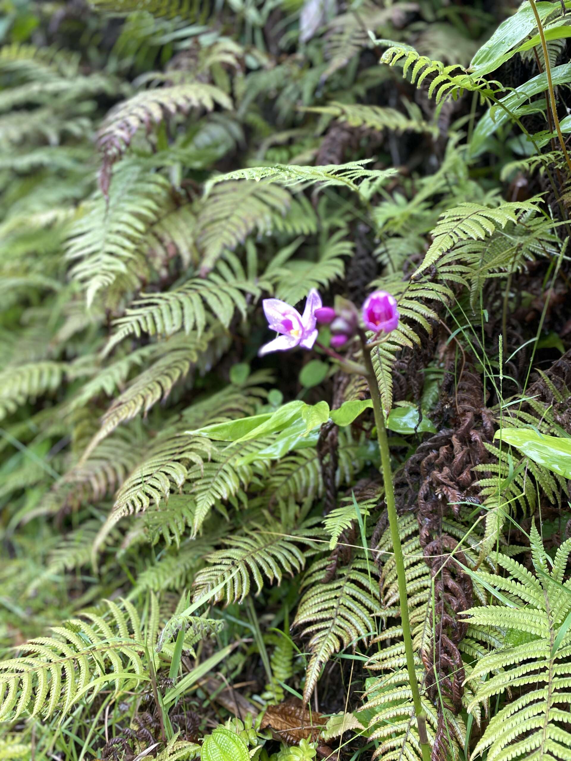 On va faire les ¾ du retour sous une flotte battante, littéralement trempés, ce qui aura pour avantage d’accélérer le rythme. Ce qu’on avait fait en 2h, on le ferait en moins d’1h30. Mais le soleil ressort pour la dernière demie-heure, on sèche vite et les couleurs de la végétation sont rendus encore plus éclatante par la pluie qui vient de s’abattre.