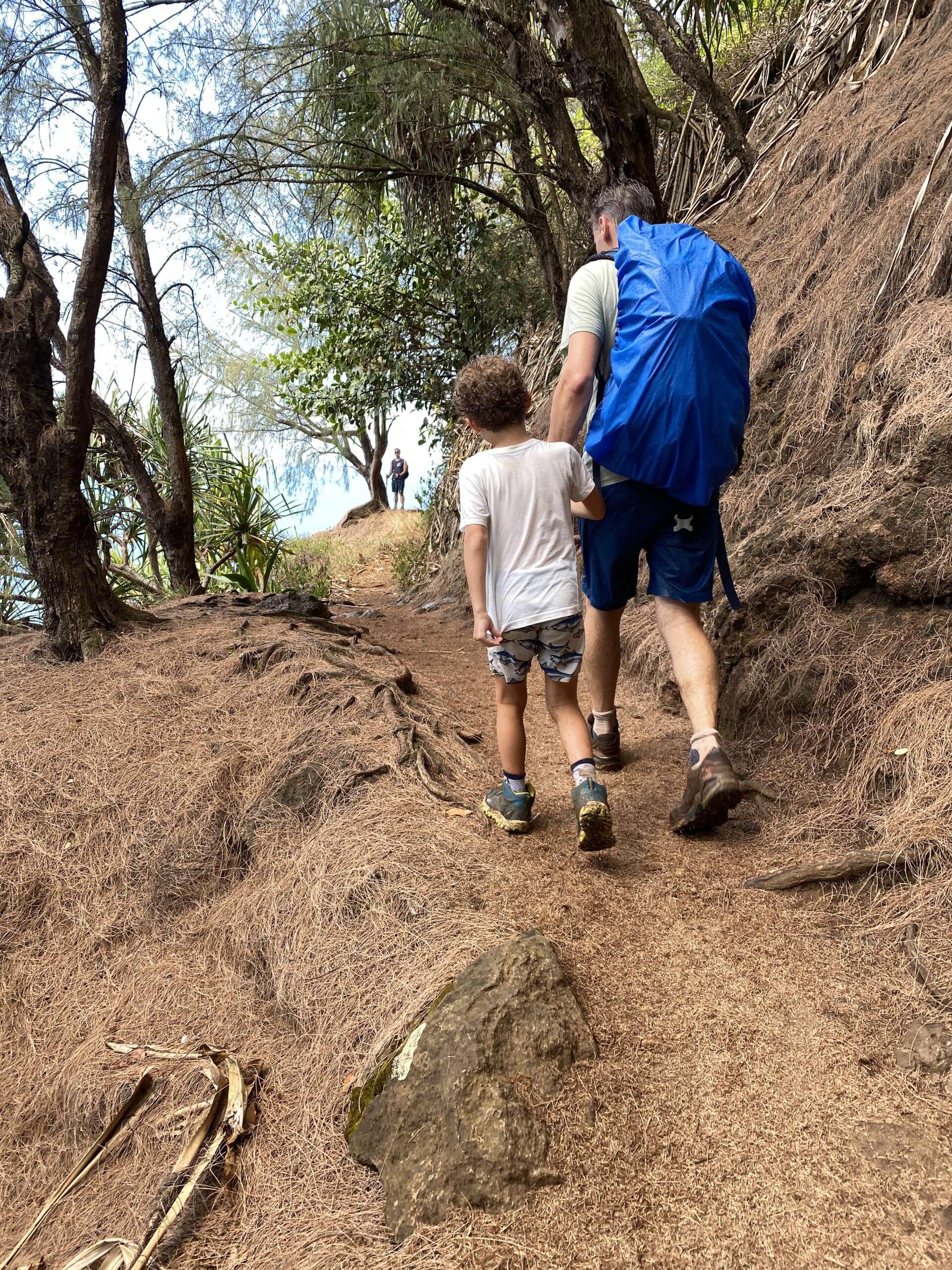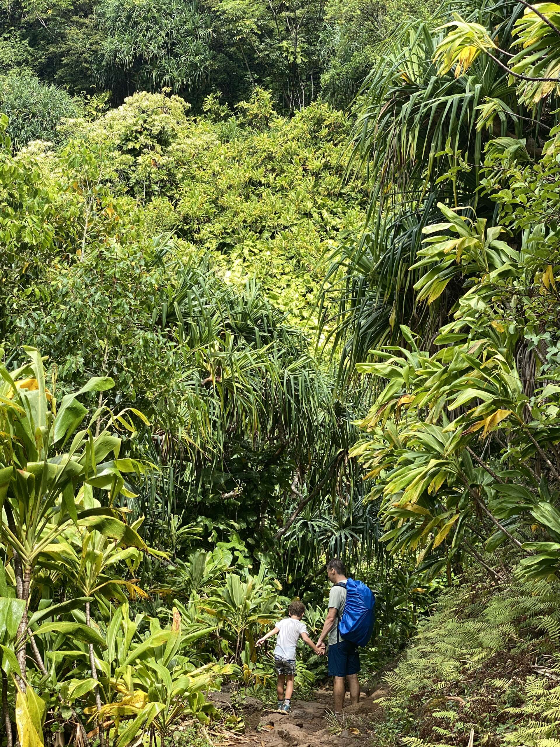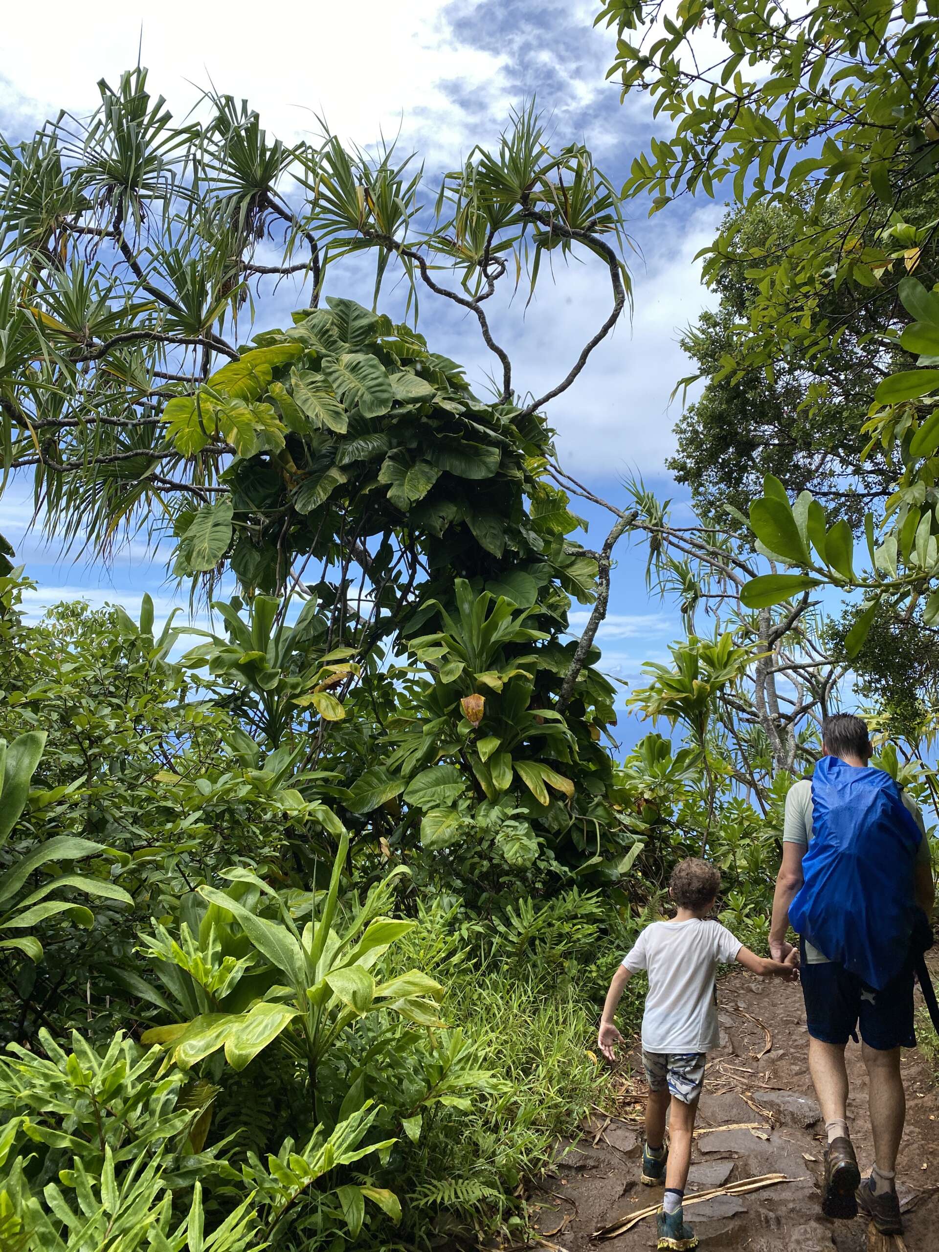 Aujourd’hui, si on y arrive, on va tenter un morceau du Kalalau trail, considéré comme le plus beau trek de Hawaii. Noah, a à peine 6 ans, entamerait ainsi son 3ème trek « mythique » après le W à Torres del Paine en Patagonie et celui du Landmanalaugar en Islande.