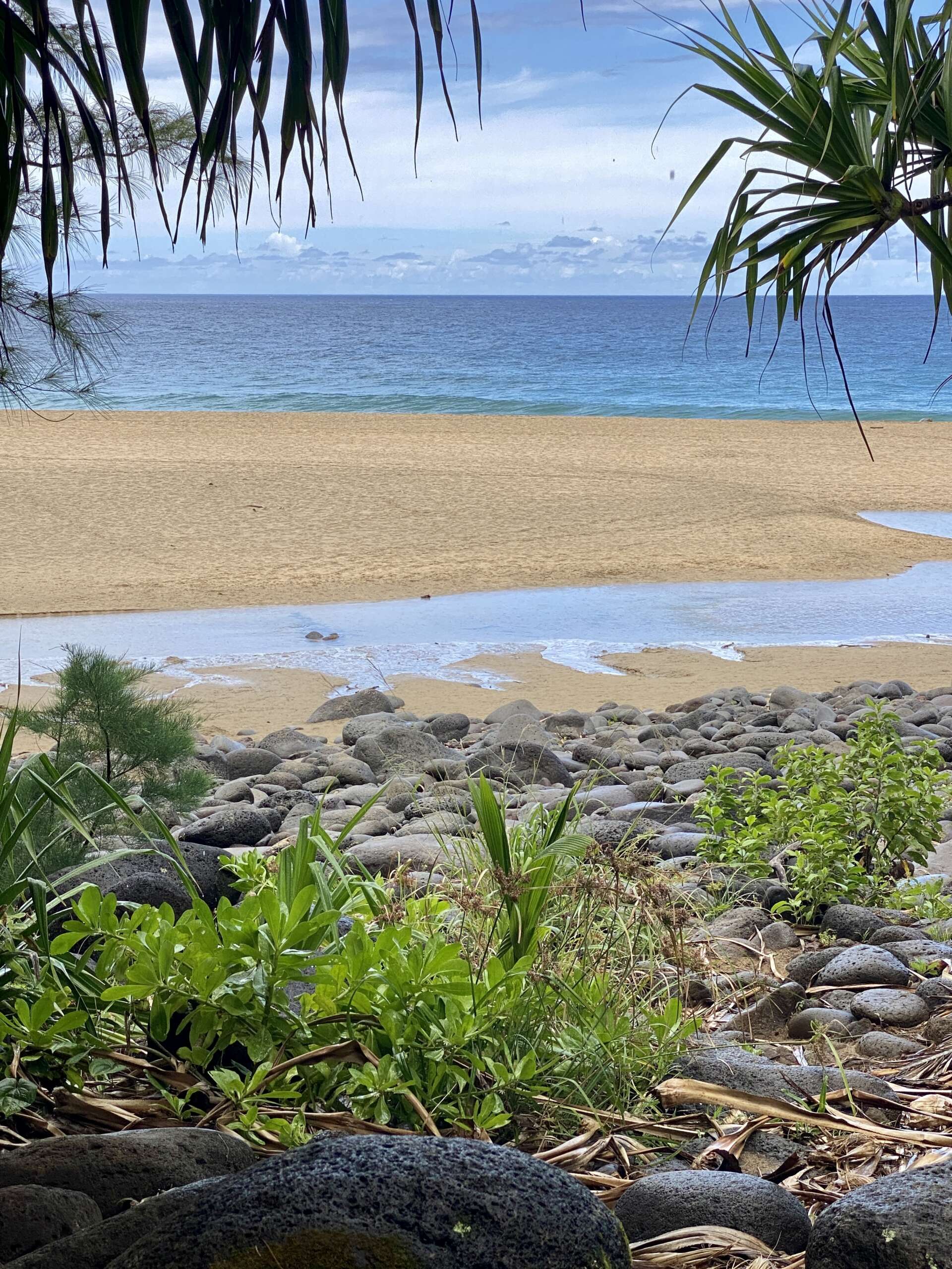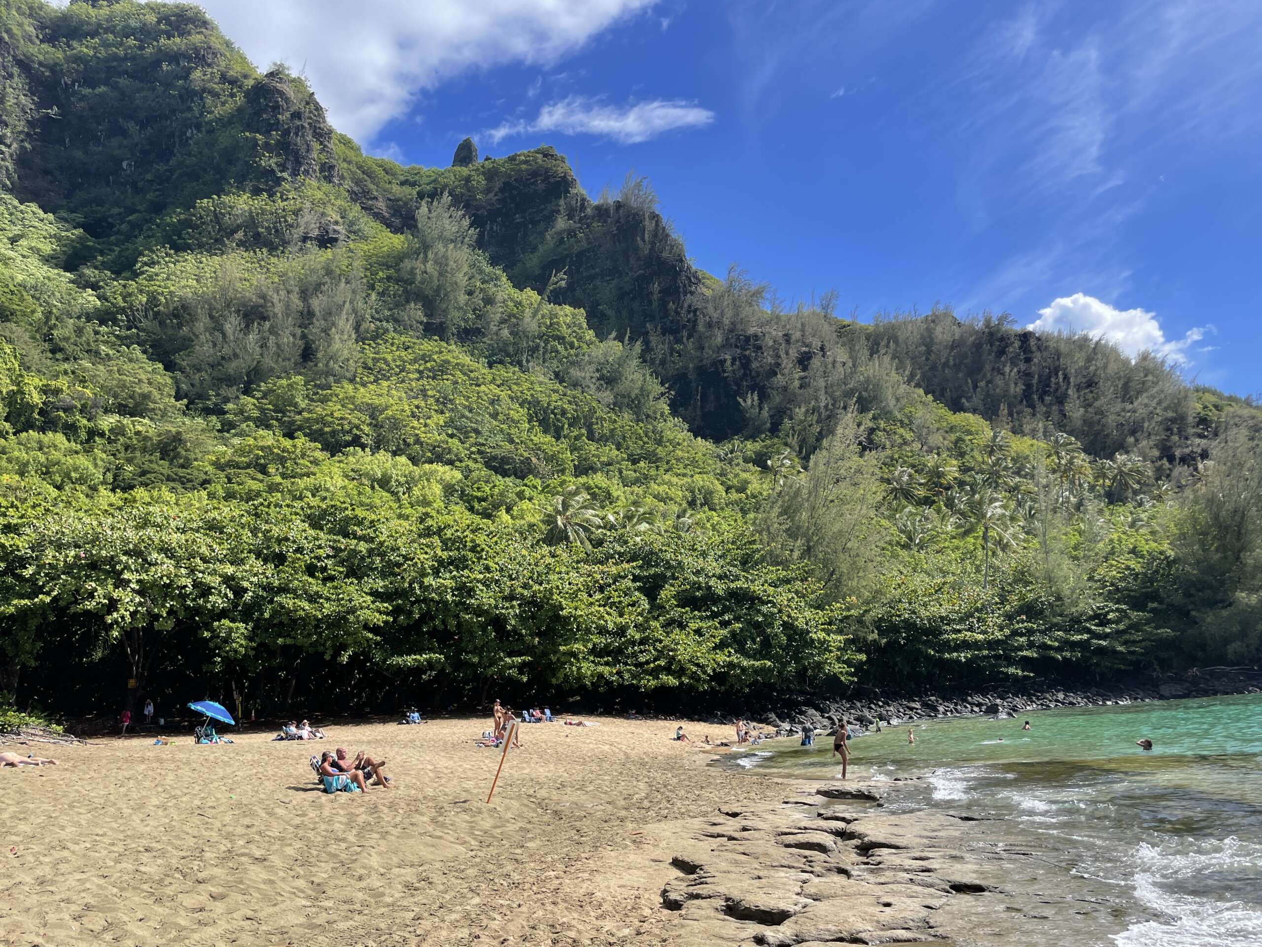 Il est 16h quand on finit notre rando. On a même 1h pour se prélasser sur la plage de Ke’e au pied des ridges avant de prendre notre navette de retour à 17h. On est totalement pouilleux de la boue et de la flotte qu’on a pris, mais heureux de cette journée.