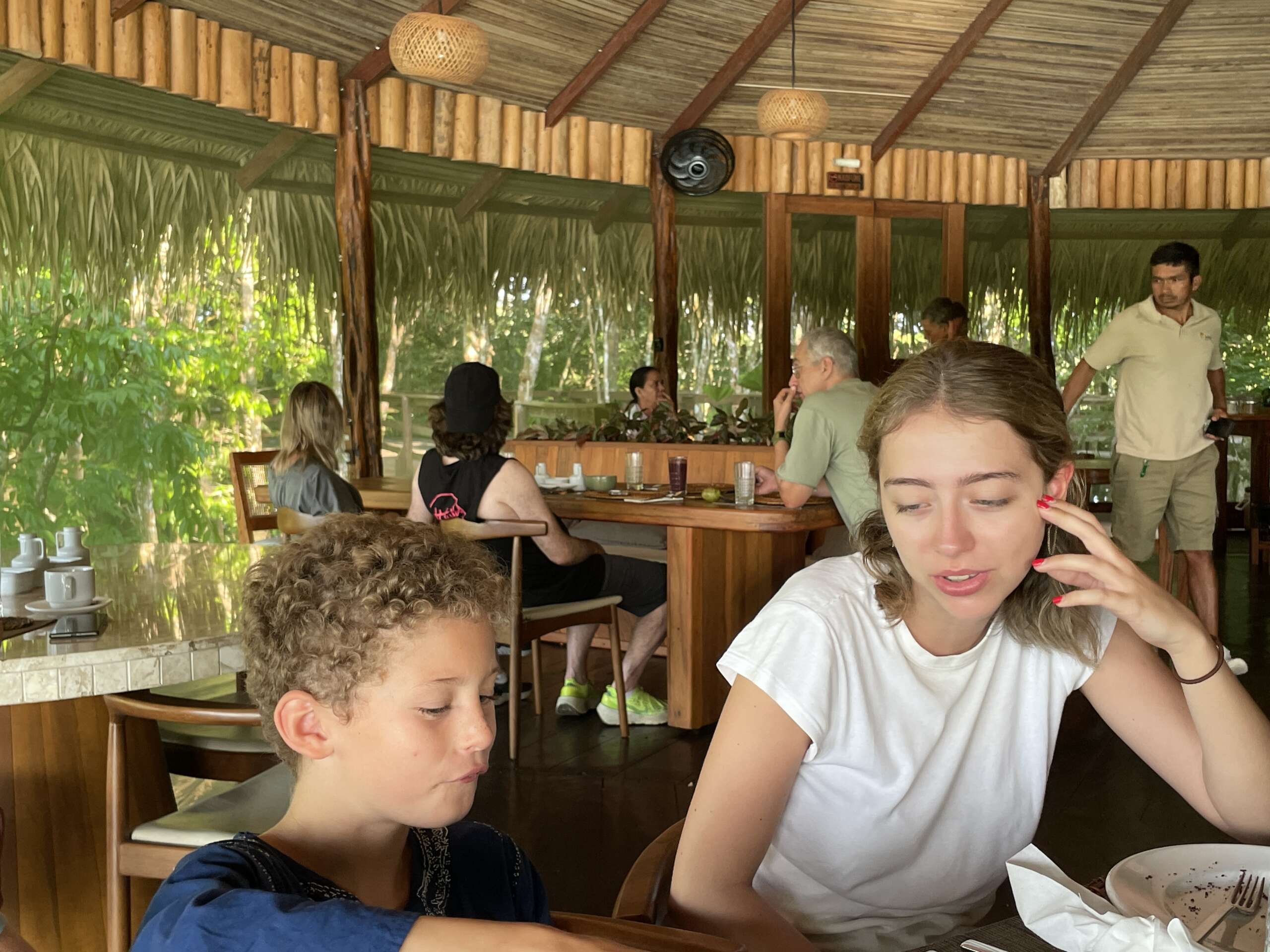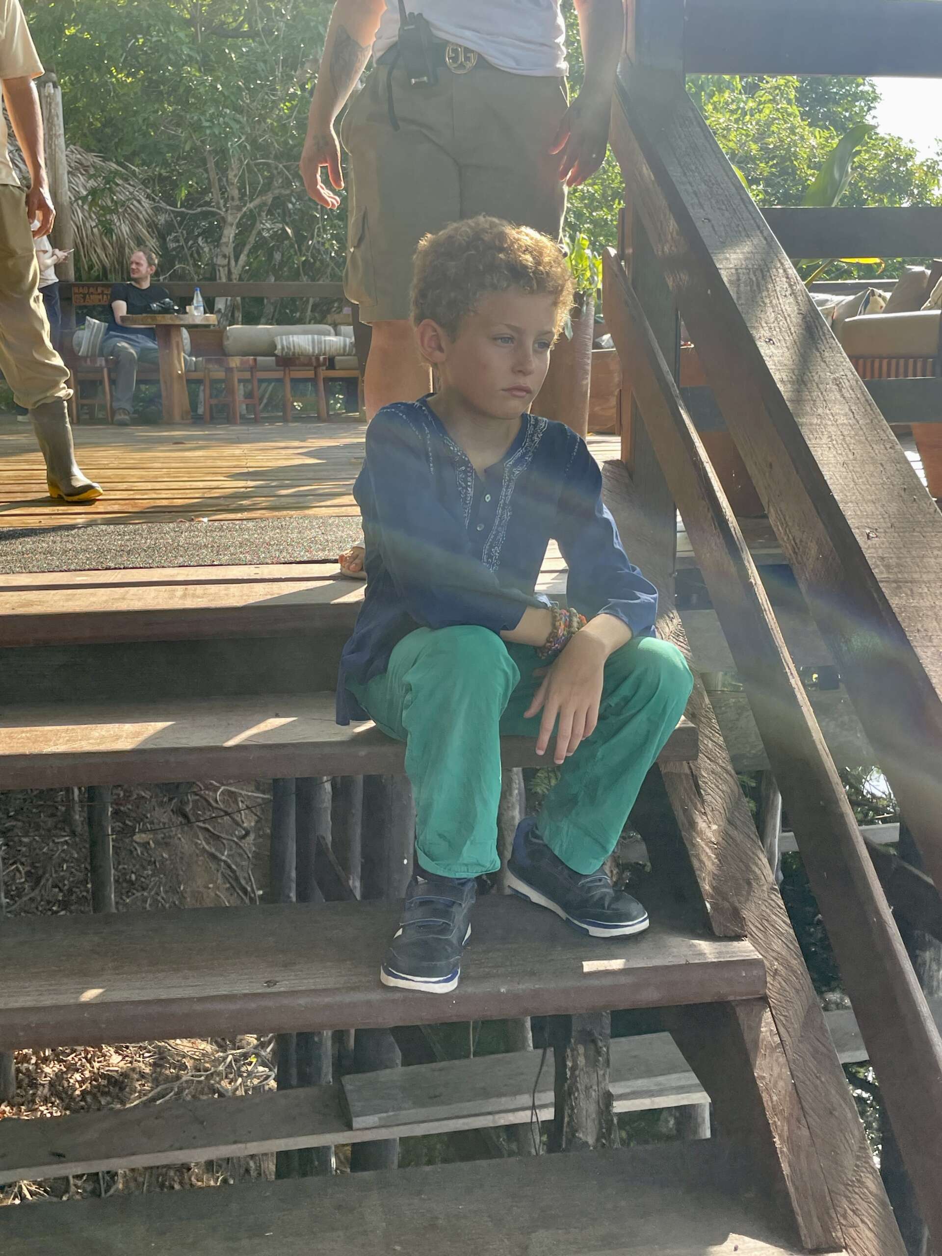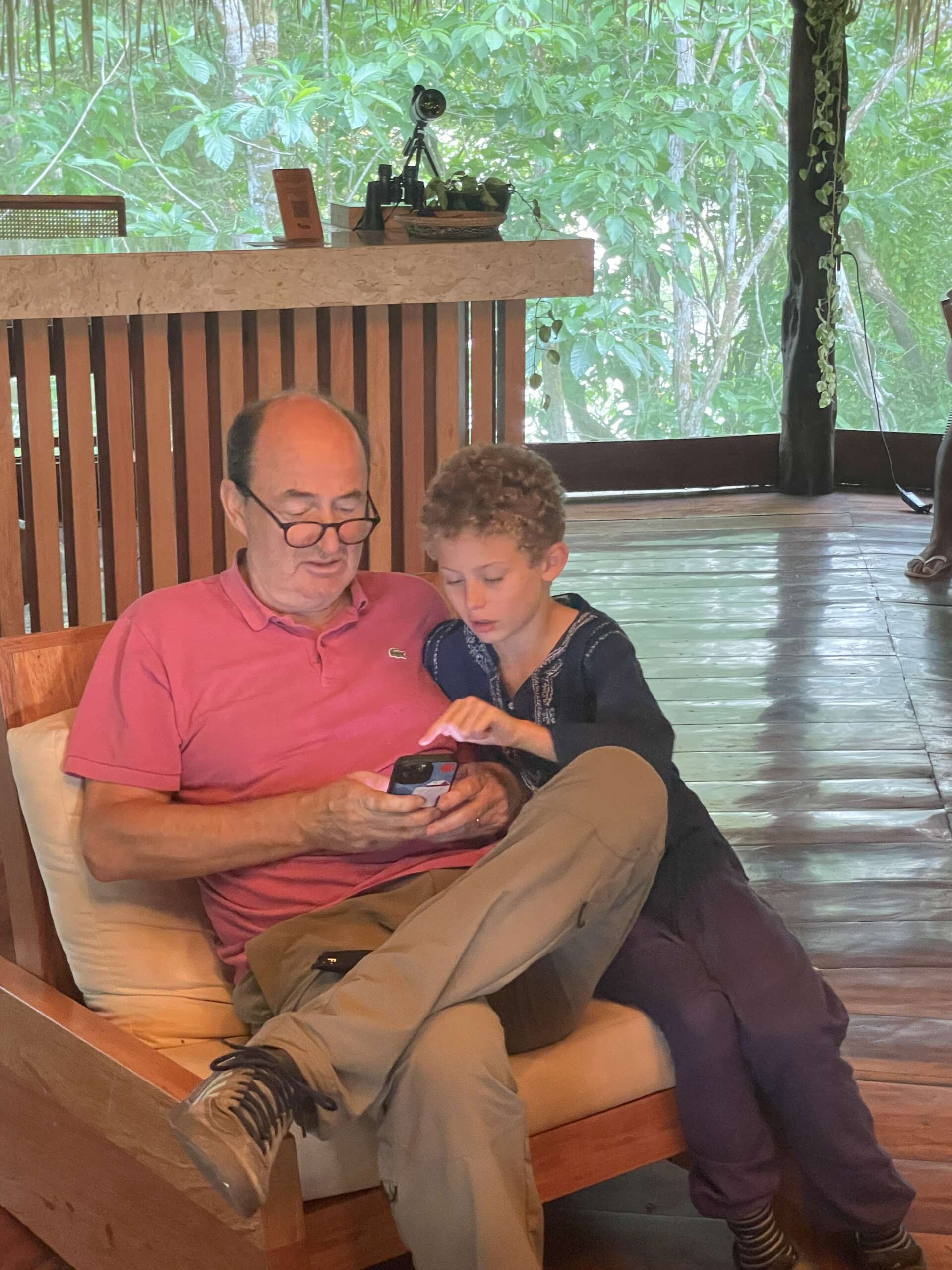 Il est 7h. De retour à l’accueil du lodge – les seuls 10 m2 ou l’on capte internet « Noah est devenu un aficionados des jeux Olympiques et donc par ricochet de l’appli de l’Equipe. Il suit cela avec Christian une dernière fois car nos français partent eux, ce matin. La France est 4ème pour l’instant au nombre de médailles. Il se passionne pour des sports improbables, retient les noms, les scores, ça l’éclate.
