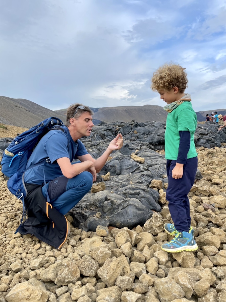 Sur le retour, Noah dévale comme à son accoutumée la piste en mode « skateboard » – comprendre en courant et en me tirant par le bras -. Sauf que sur des zones volcaniques, c’est vite sportif. Bonne nouvelle, mon genou mis à rude épreuve en courant dans cette descente sur un sol aussi dur et inégal a l’air de tenir.