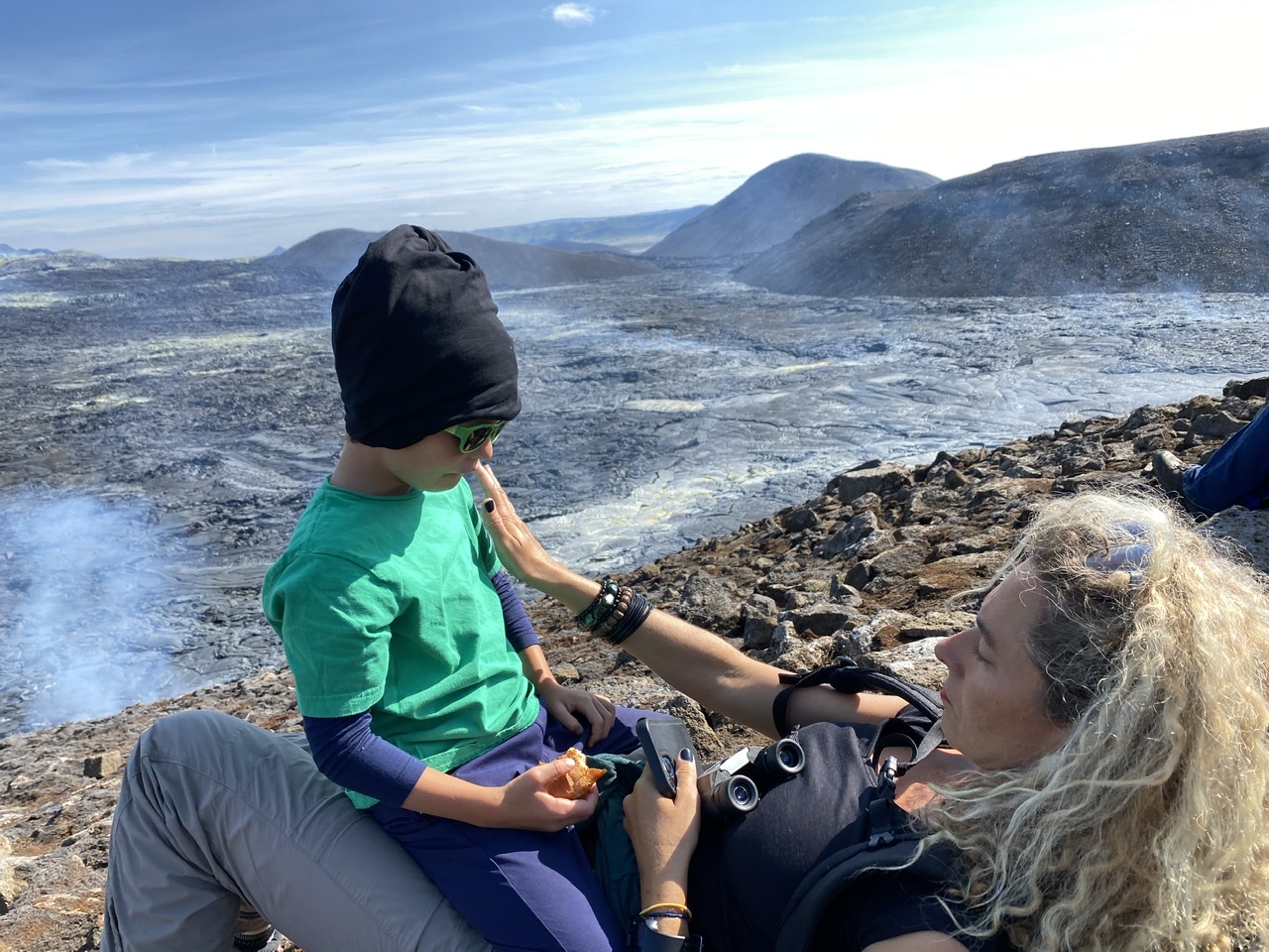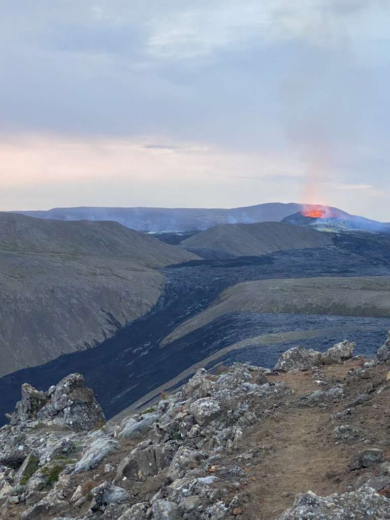 1h de route pour atteindre le volcan, puis rando sur la route B pendant 3-4h pour voir les coulées de lave, déjeuner quelque part du côté de Grindavik, détente au Blue Lagoon (Noah ne parle que de cela depuis 4 jours), puis en fin d’après-midi, randonnée de 2-3h via la route C du volcan pour observer le cratère en éruption, avant de s’enquiller 2h de route pour note prochain hébergement.