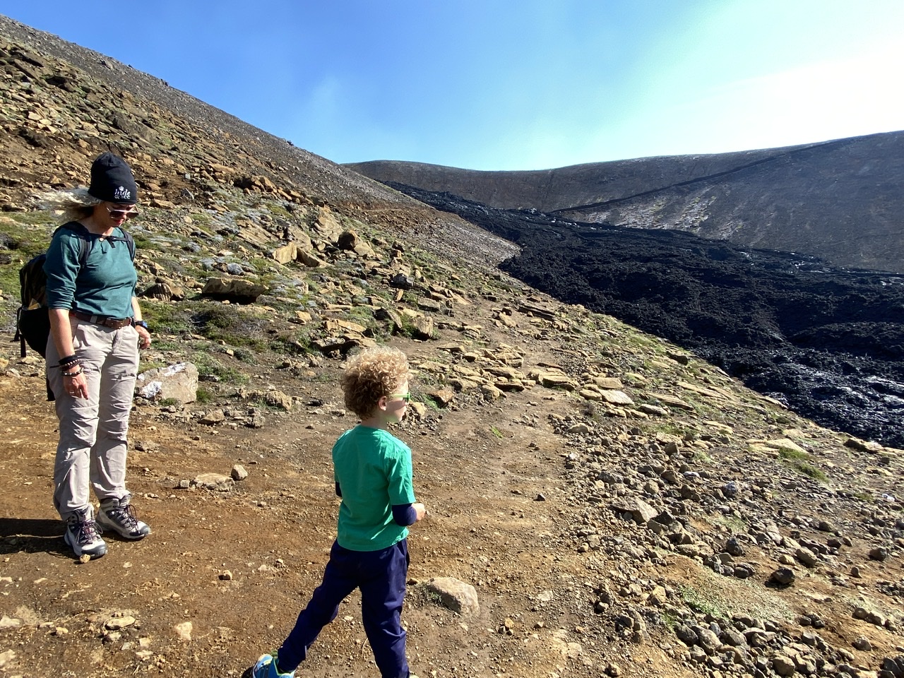 Un moment on pense à inverser le programme et commencer par le Blue Lagoon et se faire en enfilade les 2 randos sur le volcan en fin de journée pour augmenter nos chances de le voir en éruption (on a n’a peur de rien), mais en checkant sur internet le Blue Lagoon est complet jusqu’à 14h (c’est le seul endroit d’Islande où il y a foule) et avec le peu qu’on a dormi, si on fait 6h de rando à partir de 15h, pas sûr que Noah suive.