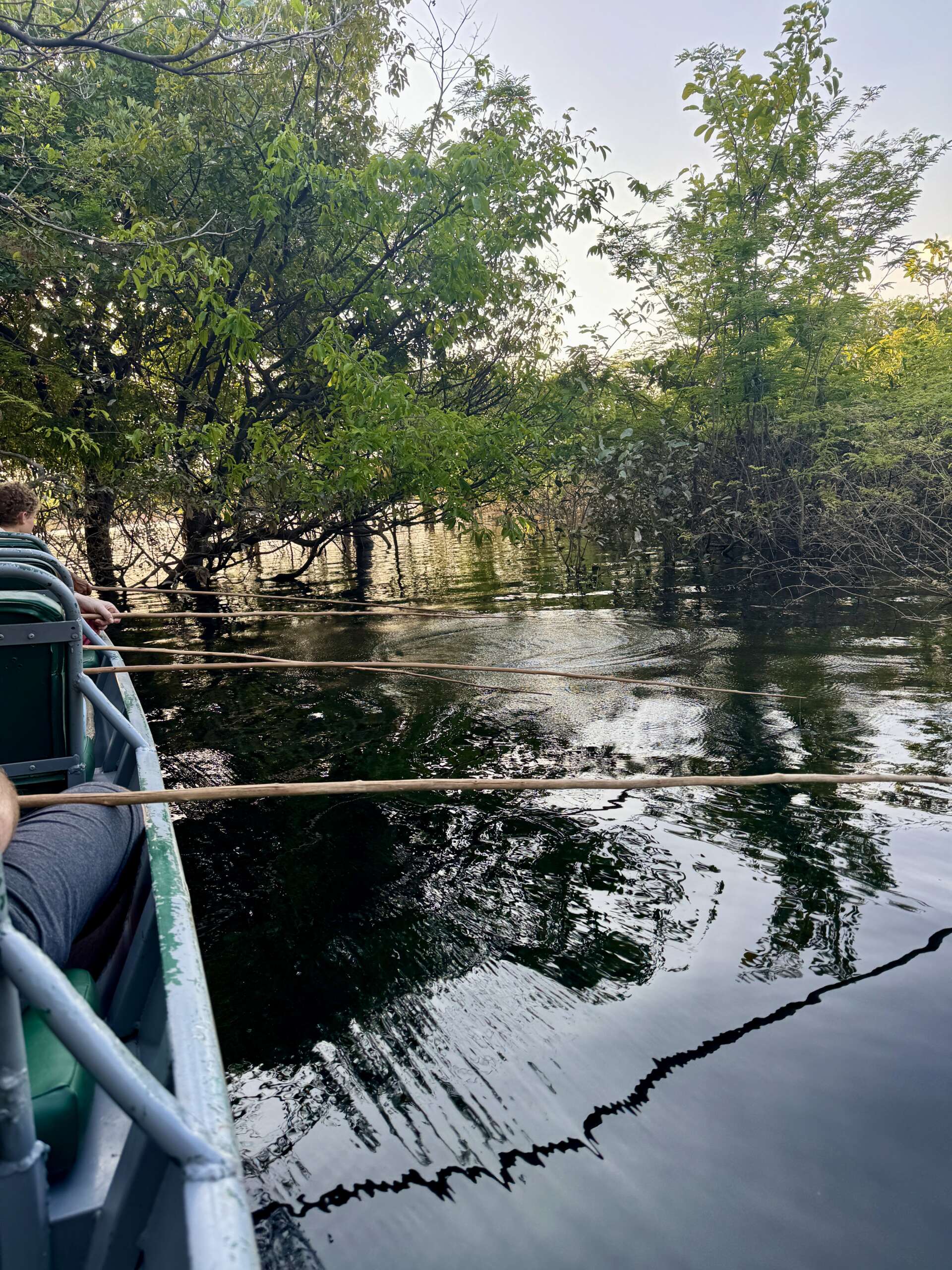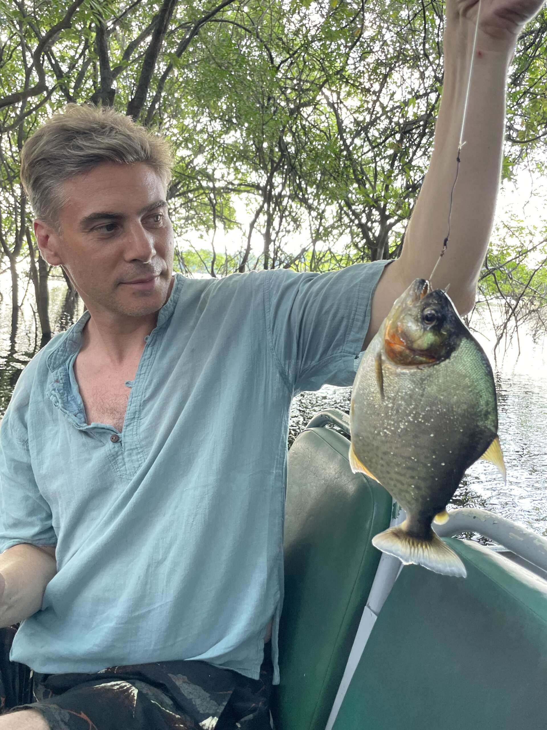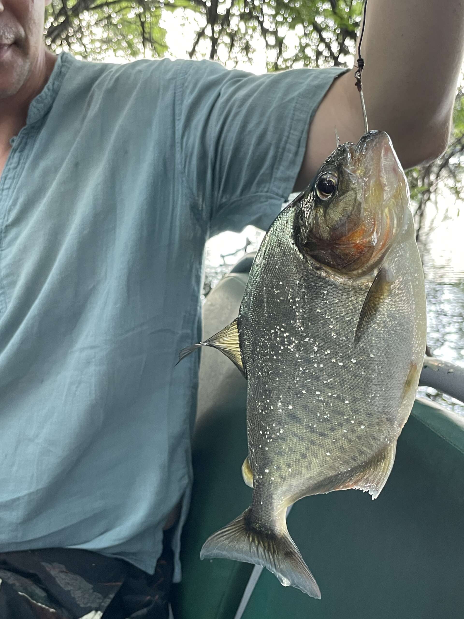 Allez, je vais rejoindre la famillia, c’est l’heure de la pêche aux piranhas. Vous savez, ces charmants poissons qui sont capables de te laisser une carcasse propre d’une vache en quelques minutes si celle-ci s’aventure dans l’eau. Ici, ils pullulent littéralement vu qu’on vient de faire 3 spots de piranhas à moins de 5 minutes en bateau du lodge.