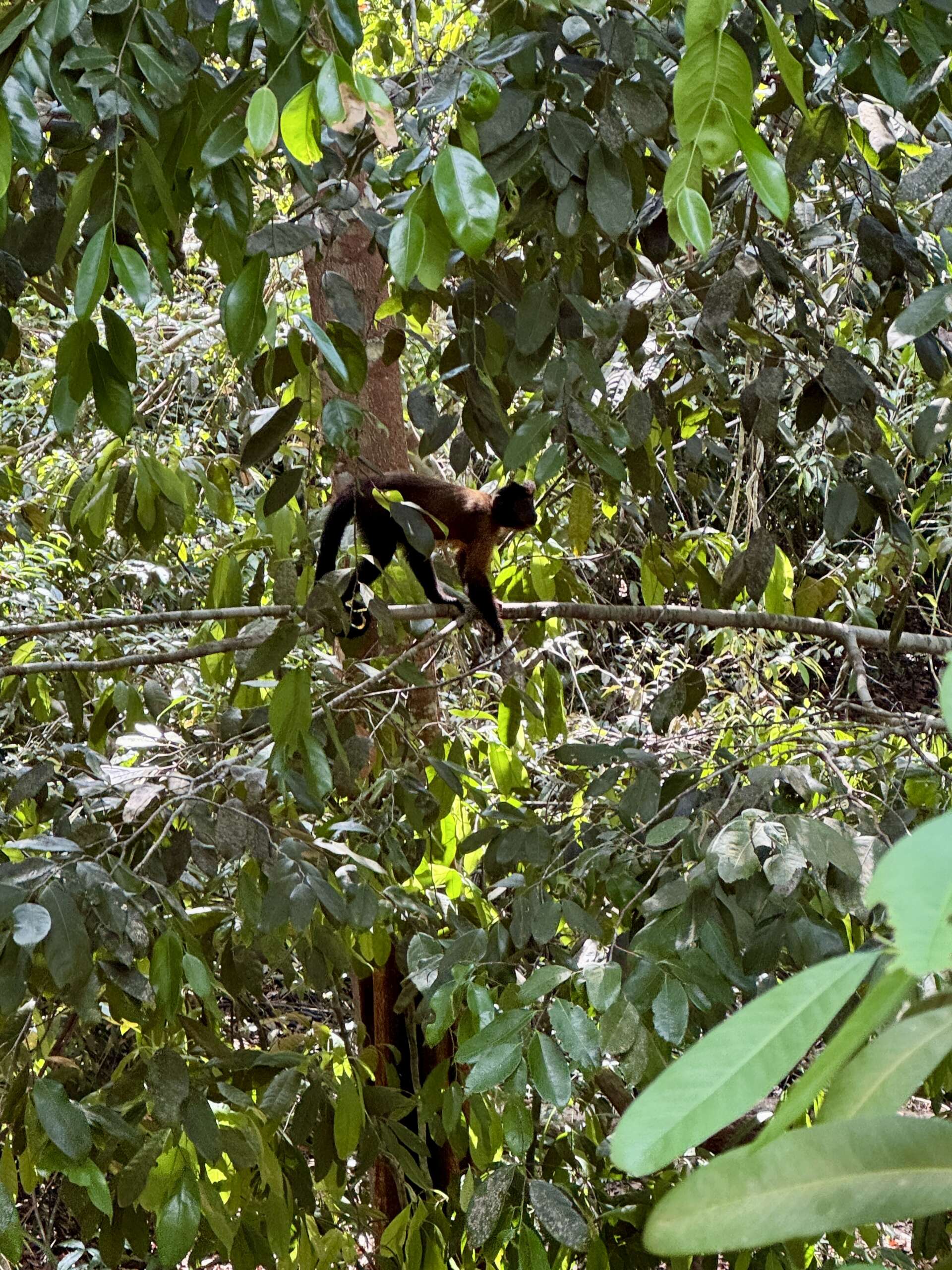 Et oui, car au pays des Bisounours d’Amazonie, tout animal qui tombe dans l’eau (oisillon, singe etc…) se voit immédiatement déchiqueté par les piranhas qui n’attendent que ça. Que c’est mignon… Je vous montre la photo d’un singe qu’on a vu à ce moment là, mais ne fermez pas les yeux. Tout va bien. Il n’est pas tombé.