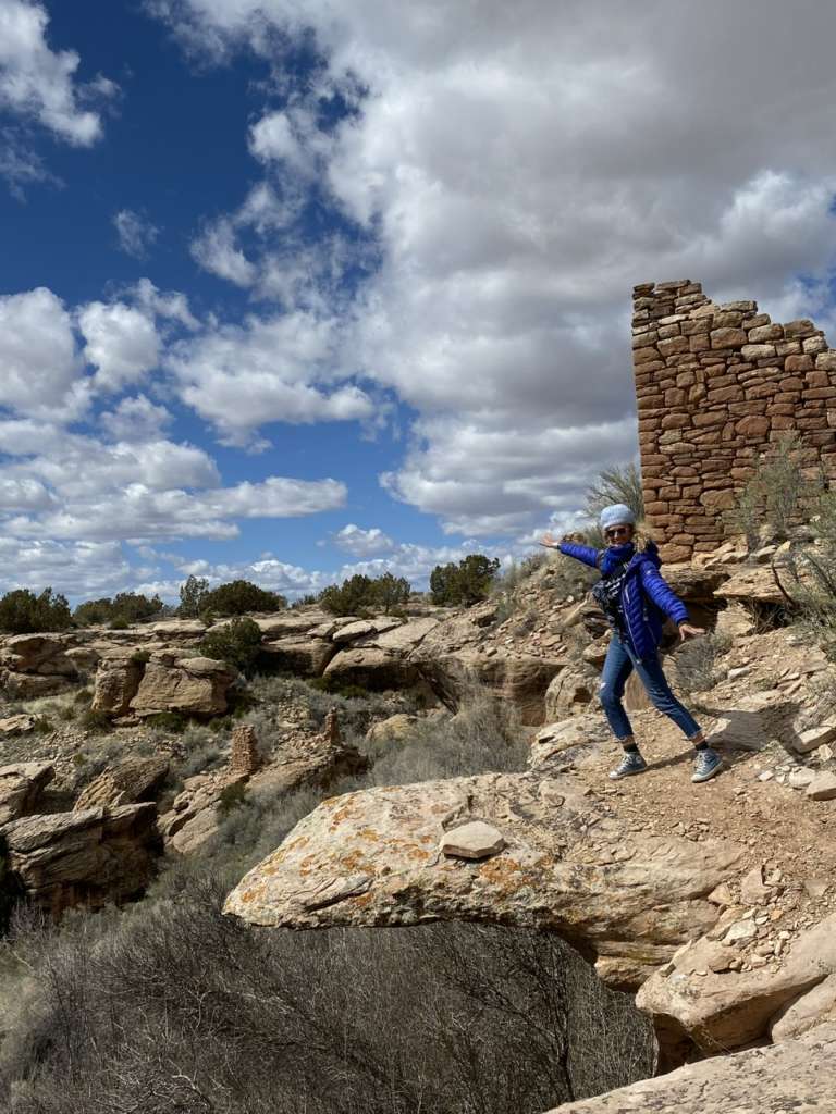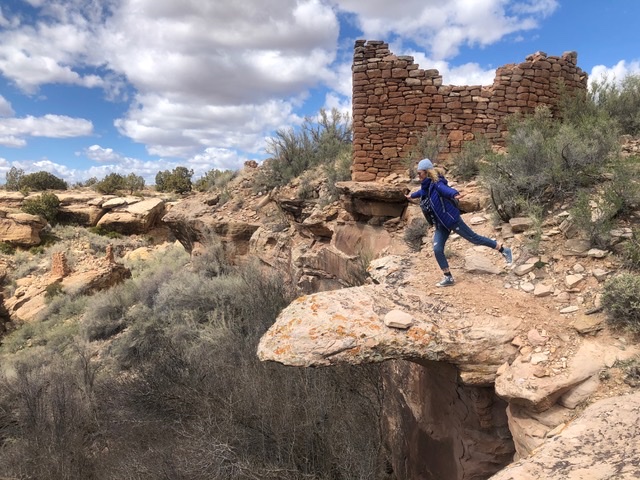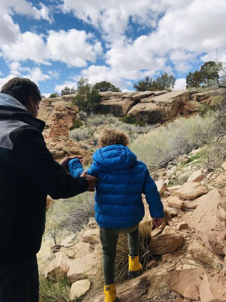 Des ruines Pueblo, il y en a partout dans le coin. On pense que jusqu’au milieu du 13ème siècle il y avait des milliers de personnes qui vivaient là, disséminés dans de nombreux villages. Puis l’éruption d’un volcan indonésien en 1256 a eu des répercussions climatiques sur une grosse partie de la planète, dont le Colorado, réduisant considérablement le rendement des récoltes et des réserves d’eau. Les différents villages se sont retrouvés en surpopulation par rapport aux ressources disponibles et comme à chaque fois dans ces cas-là, ils ont commencé à se faire la guerre jusqu’à ce que tout ce petit monde finisse par disparaître ou quitter la région en moins de 100 ans. Mais avant cela, les villages autrefois dans les plaines, ont migré vers des lieux plus faciles à défendre et c’est pour cela qu’on retrouve de nombreux villages, comme dans le Mesa Verde proche, bâtis à flanc de falaise dans la roche, et donc difficilement accessibles.