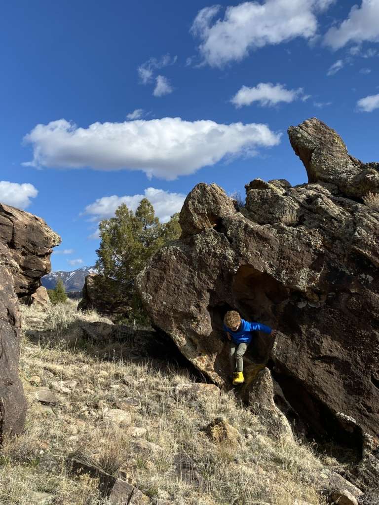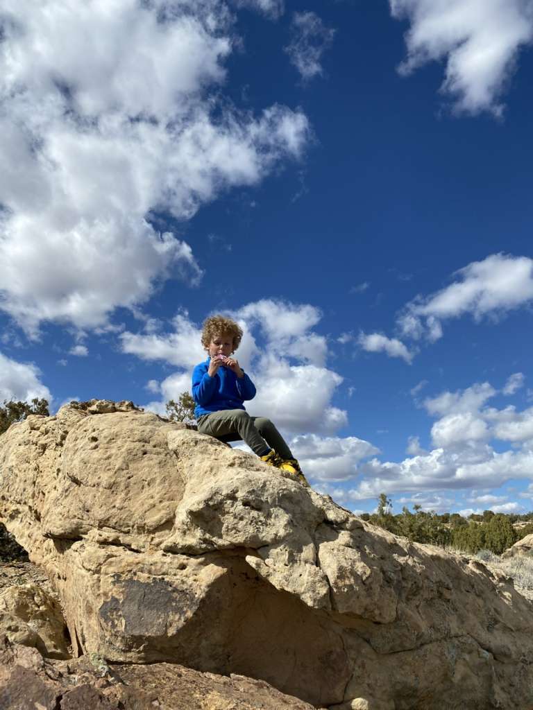 Alors que Noah se fait de plus en plus insistant pour retourner au ranch, on lui propose d’aller voir enfin la grotte de Butch Cassidy. Occasion immanquable de trouver le trésor. Ok on y va. Débordant d’énergie il fouille la grotte puis part crapahuter dans les rochers avoisinants en quête du trésor. Malheureusement, pas de pièces d’or à l’horizon.