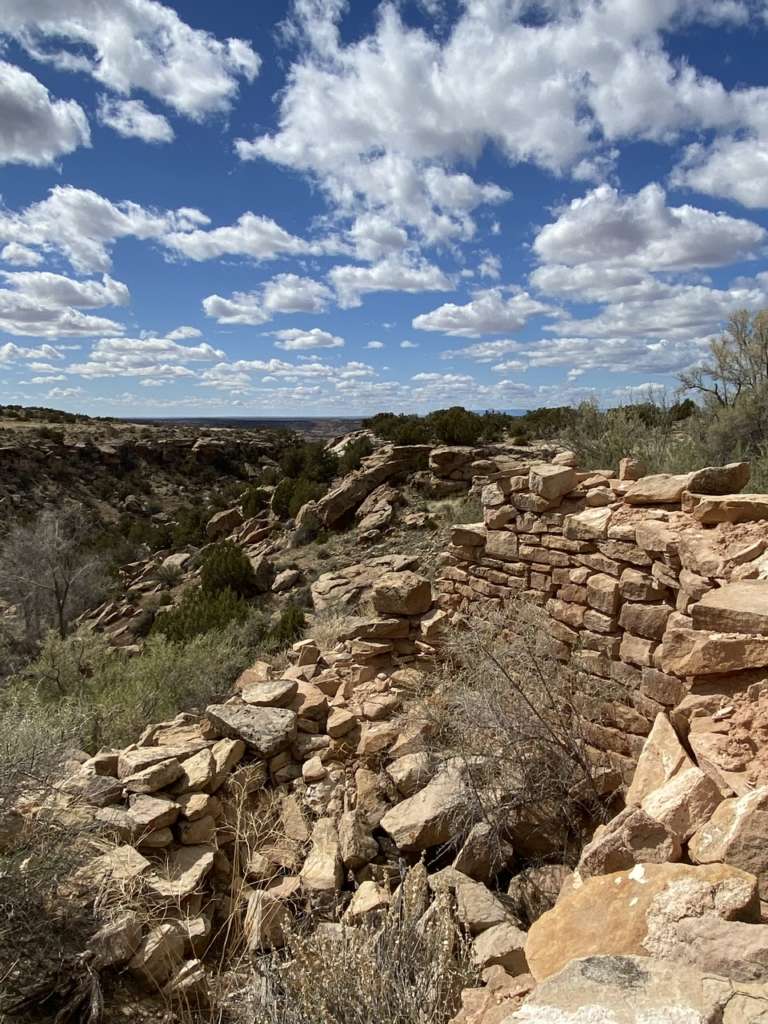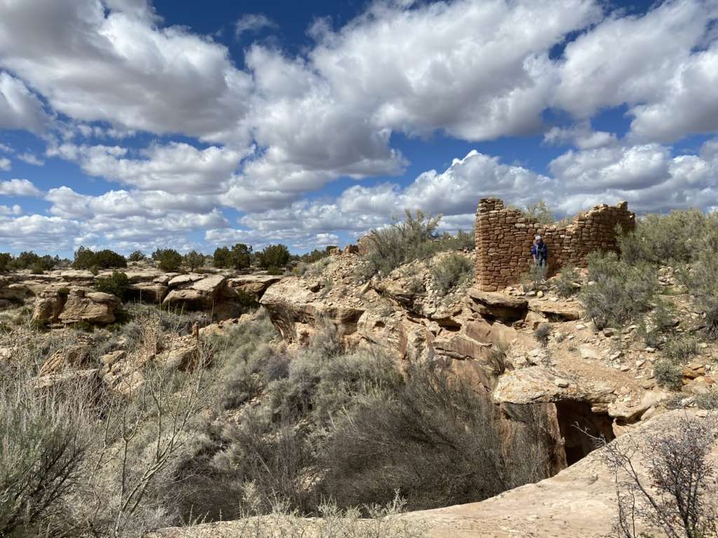 Garry nous explique d’ailleurs que pour trouver des ruines dans ces immensités, il se base sur l’escarpement des roches et la végétation. Pour les roches, c’est clair. Pour la végétation, cela mérite un petit développement. Les peuples cultivaient de nombreuses plantes pour survivre dans ce milieu hostile, et même 800 ans plus tard, ces plantes particulières continuent de pousser là où ils faisaient les récoltes. Quand tu vois un regroupement de plantes de ce type, souvent il y avait un village pas loin. Tu cherches alors l’endroit alentour le plus facile à défendre et la ruine Pueblo est souvent proche.