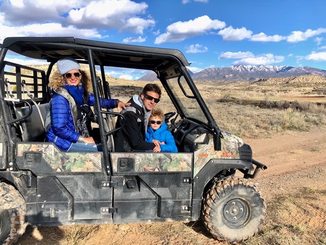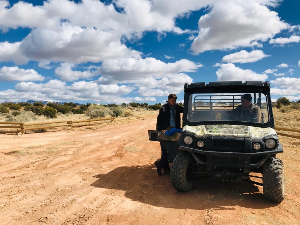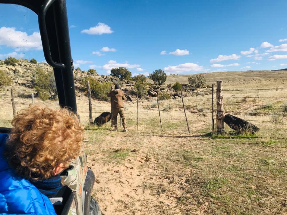 On part donc en « voiturette » 4×4 avec Garry (ou comme dirait Noah maintenant « Gayyyrry »). On suit la portion de route normale en direction de Bluff sur quelques kilomètres, puis on bifurque sur la droite après avoir ouvert une barrière qui s’avère être l’accès à une autre partie du ranch (la route principale coupe le ranch en deux) avant de s’engouffrer dans des chemins de terre et de rocaille. “Super, un chemin de quad” dit Noah. D’ailleurs cela se confirme assez rapidement car sur la première grosse montée, on entend un bruit sourd à l’arrière. On s‘arrête pour regarder. La voiturette vient de perdre son phare arrière en chemin, arraché par un rocher.
