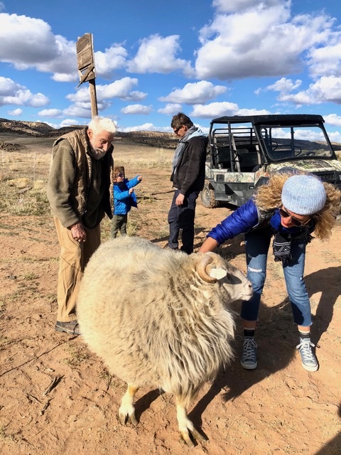Arrivés au point de vue et pendant que monsieur se prend un petit yaourt (on n’est pas des monstres quand même, parfois il a le droit à un goûter), on voit au loin une espèce de maison en forme de Yourte qu’est en train de se construire Youssef (qui aide au ranch). D’ailleurs on ne tarde pas à l’apercevoir au loin avec son chien Bear (un Patou des Pyrénées lui aussi).