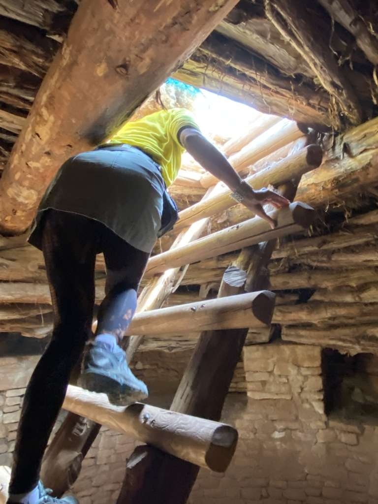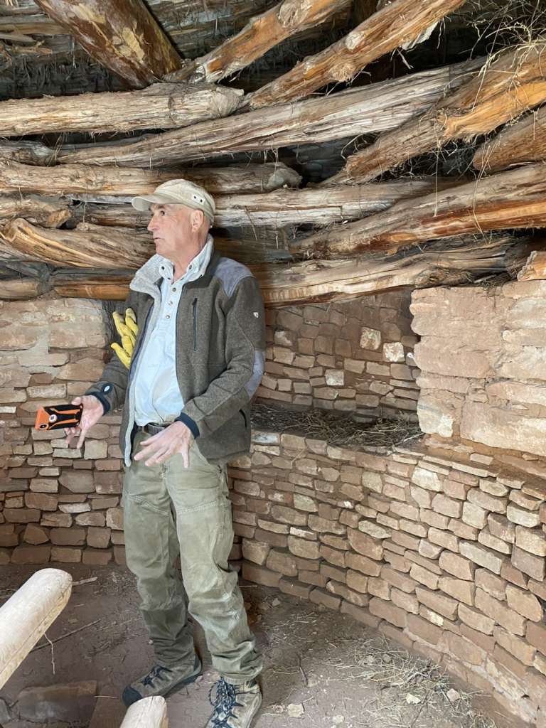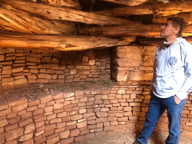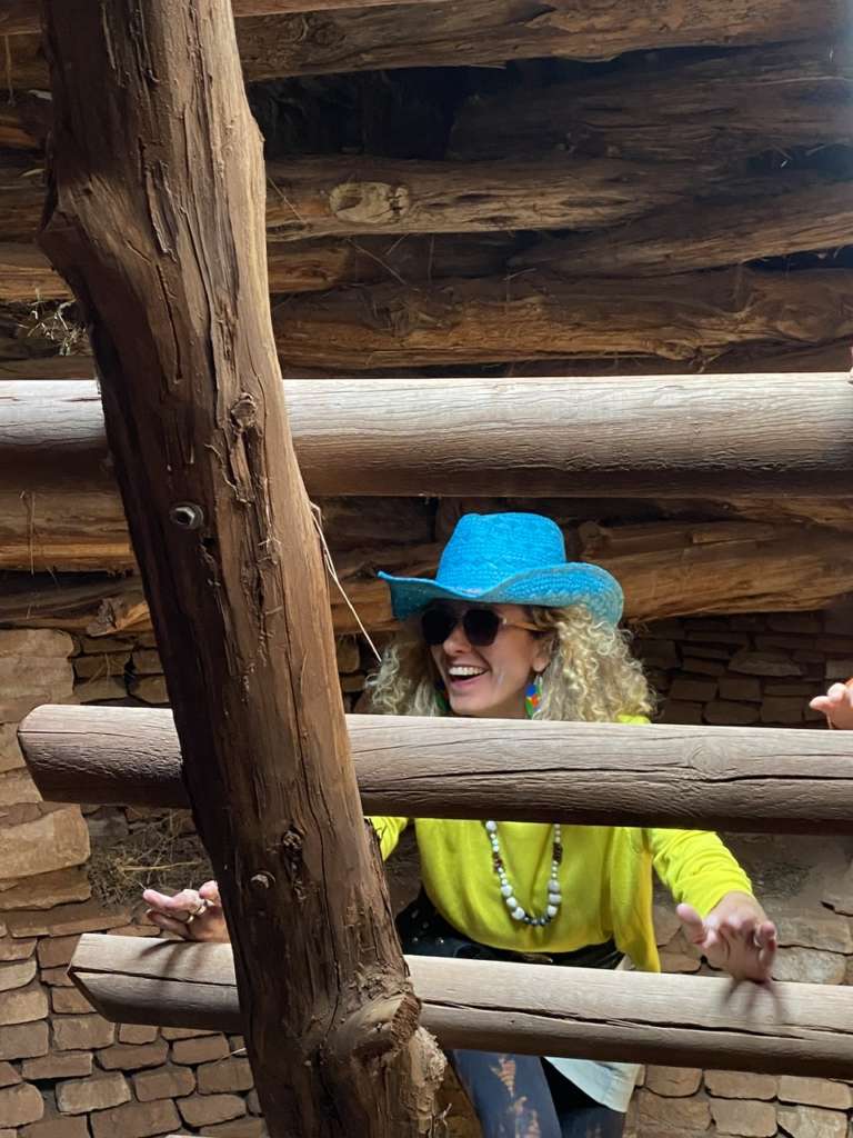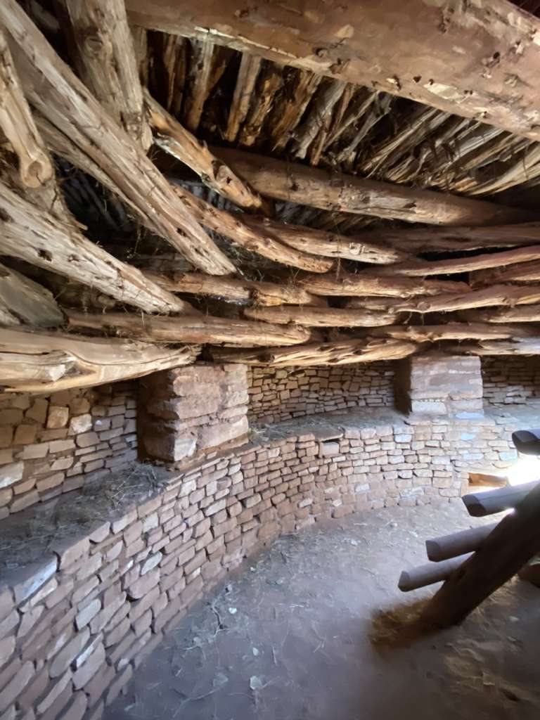 On reprend la voiture et notre petit garçon sombre comme à son habitude dans les bras de Morphée juste avant d’arriver à une Kiva restaurée. Les Kivas sont les habitations sous-terre datant de 1 000 ans environ qui étaient creusées 2 à 3 mètres sous le sol pour offrir à ses habitants un environnement iso-température toute l’année. On rentrait par le dessus, et à l’intérieure de la Kiva, sur un des côtés, un espace était aménagé pour pouvoir y faire du feu – une petite ouverture extérieure sur le côté permettant à la fumée de s’évacuer.