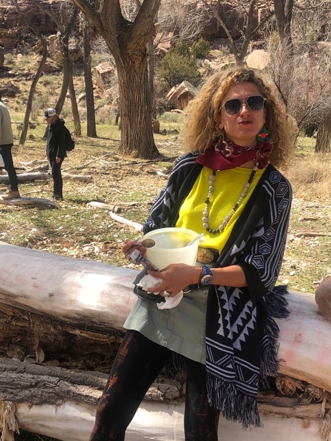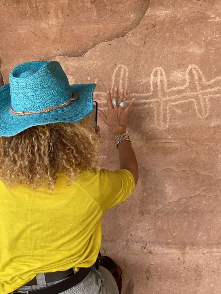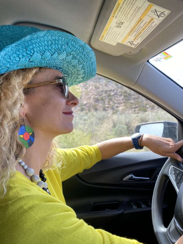 Nous voila donc partis pour Montezuma. Garry et Ming, dans la voiture de tête. Les deux ont parcouru ce parc en long et en large à la recherche de Rock art (pétroglyphes) et de ruines. Virginie est habillée pour l’occasion en oiseau de paradis.