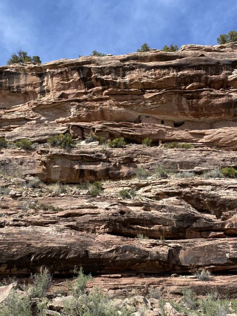 Pendant que Noah poursuit son petit somme, on s’arrête à un dernier endroit pour voir des ruines incrustées dans les falaises, à la manière de ce qu’on avait vu au Cliff Palace dans le Mesa Verde.