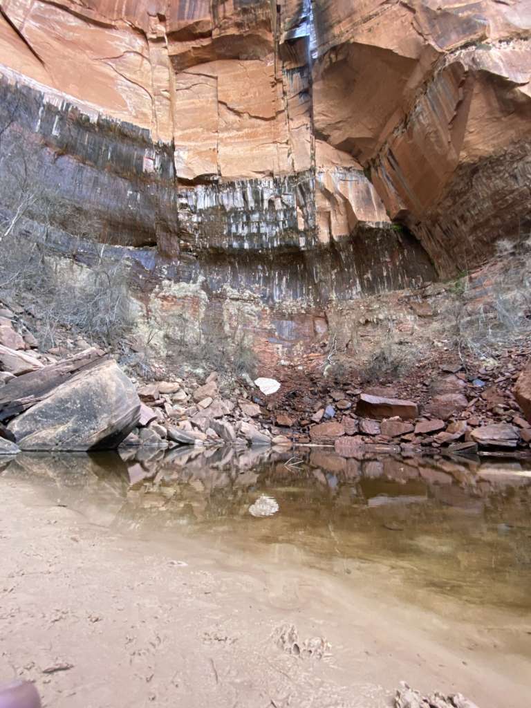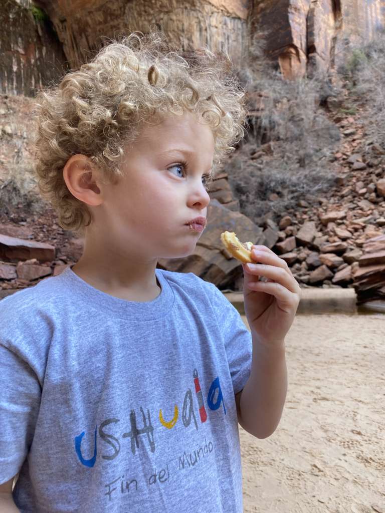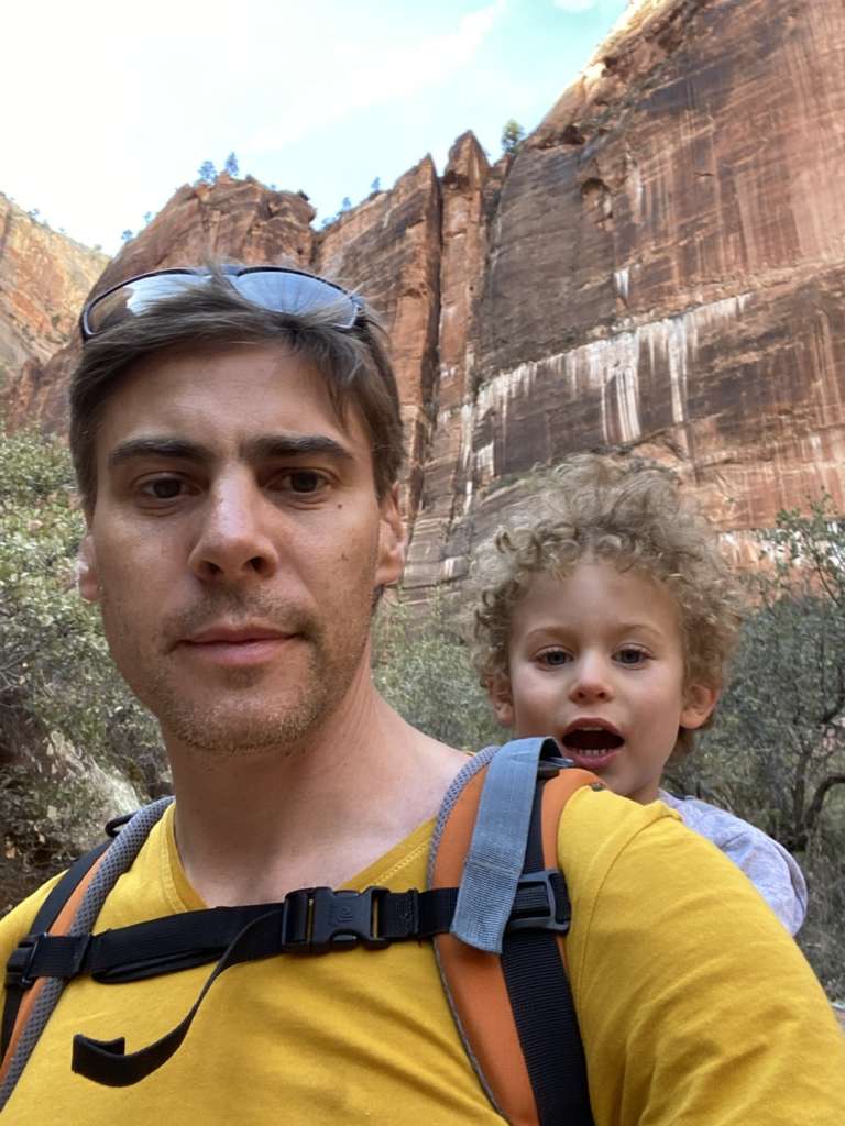 Une fois en bas il est passé 15h. On avait prévu ensuite de faire la Riverside Walk (le Weeping Rock trail étant lui aussi dévasté par un éboulement), mais Noah s’est endormi 30s après être entré dans la voiture. Il faut dire qu’autant au réveil ca caillait, autant maintenant il fait bien chaud, donc 2h de ballade en plein canard ca fatigue un peu. En été ça doit être insoutenable.