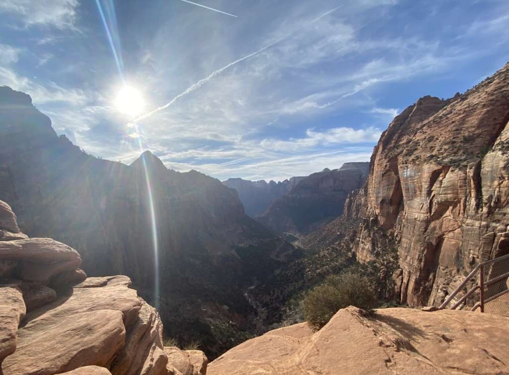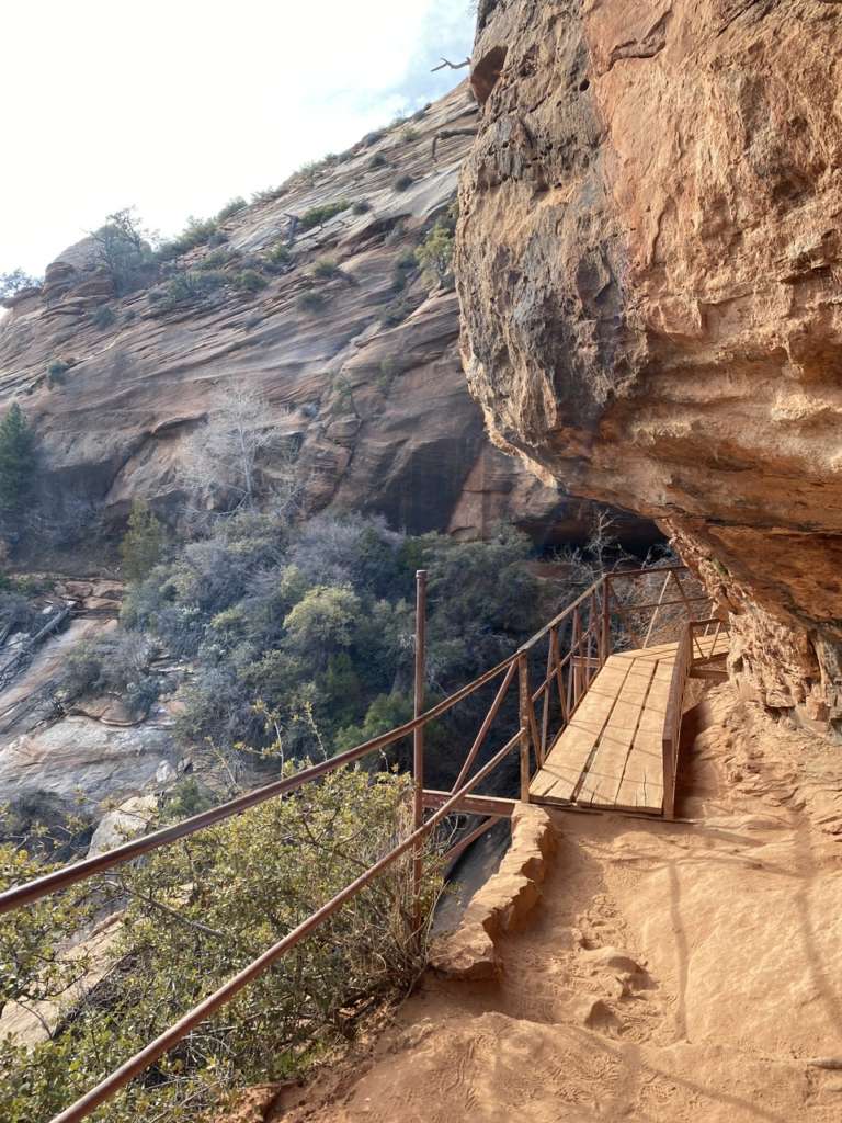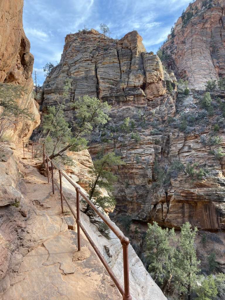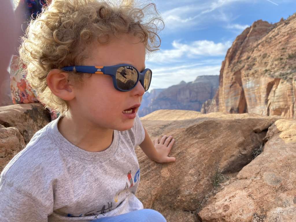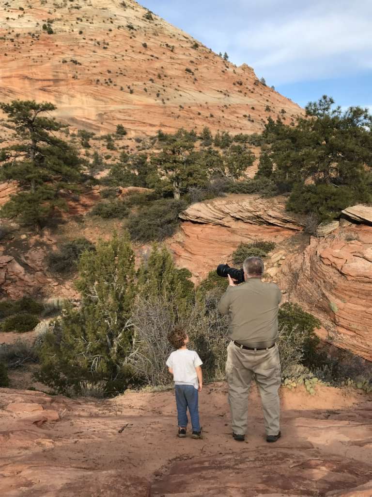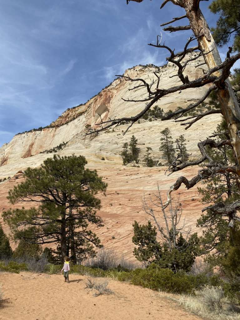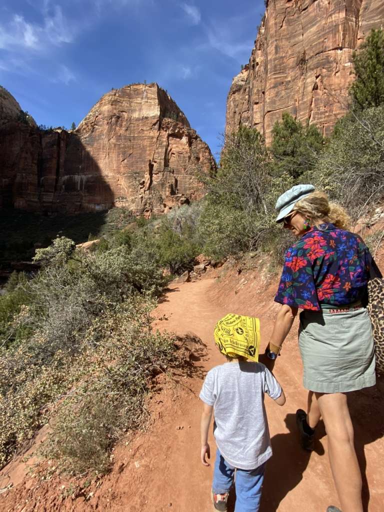 Zion a la particularité d’être un des rares canyons qui se visite de dessous et où les randos montent pour avoir des points de vue. Les parois étant particulièrement abruptes, ca monte sec, voir très sec, et certaines randos nécessitent de s’encorder ou de monter en s’appuyant sur des chaînes. Du coup, avec doudou, on remise celles-ci à une prochaine visite, en espérant que la prochaine fois le problème pour les faire ne soit pas notre grand âge.