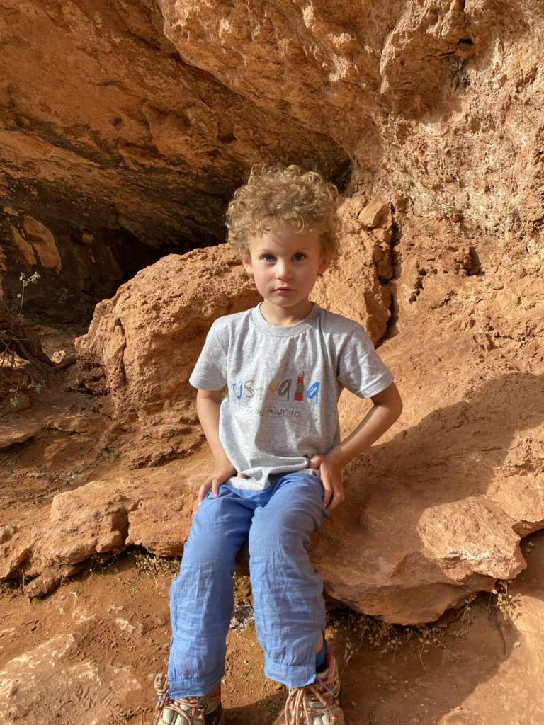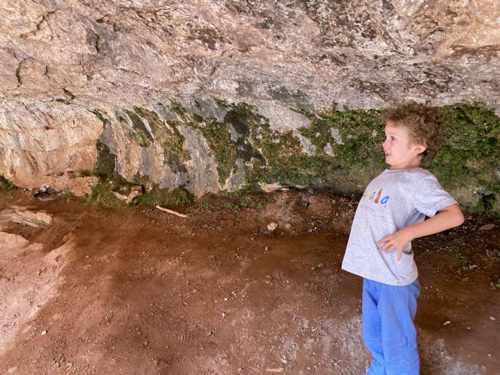 Et on ne regrette pas. Elle est en effet aussi amusante que grandiose. Après une petite montée pour se mettre en jambes, on se met à longer des falaises abruptes (bon ok il vaut mieux lui tenir la main, ca ne souffre pas le faux pas). ici un petit balcon en fer rivé dans la roche pour passer un coude, là une grotte (récemment il s’est pris de passion pour les grottes), puis des rochers à escalader. Le paradis pour notre petit marcheur en herbe.