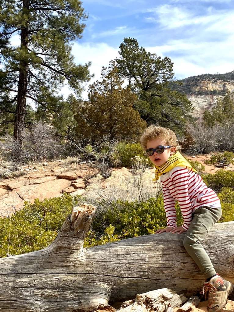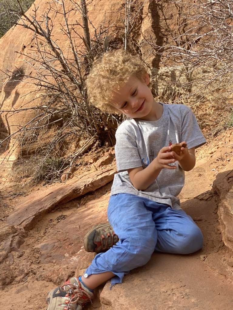 Arrivés en haut, comme un peu trop souvent malheureusement, très belle vue sur le canyon avec des a pics partout et un Noah ingérable qui n’a qu’une envie c’est d’aller là où il ne faut vraiment pas qu’il aille si on veut le ramener en un seul morceau. Du coup on fait garde chiot (désolé Noah si tu nous relis dans 10, 20 ans) et quand on décide de redescendre, comme en plus il a fait l’andouille en haut et que c’est pas une “bloucle” (il n’arrive toujours pas à dire boucle), monsieur se déclare fatigué, me fait le laïus sur l’importance de l’équipe qui doit aider quand un même re est fatigué. Et ca tombe bien, parce que Noah est fatigué. CQFD. Papa, tu peux me porter.