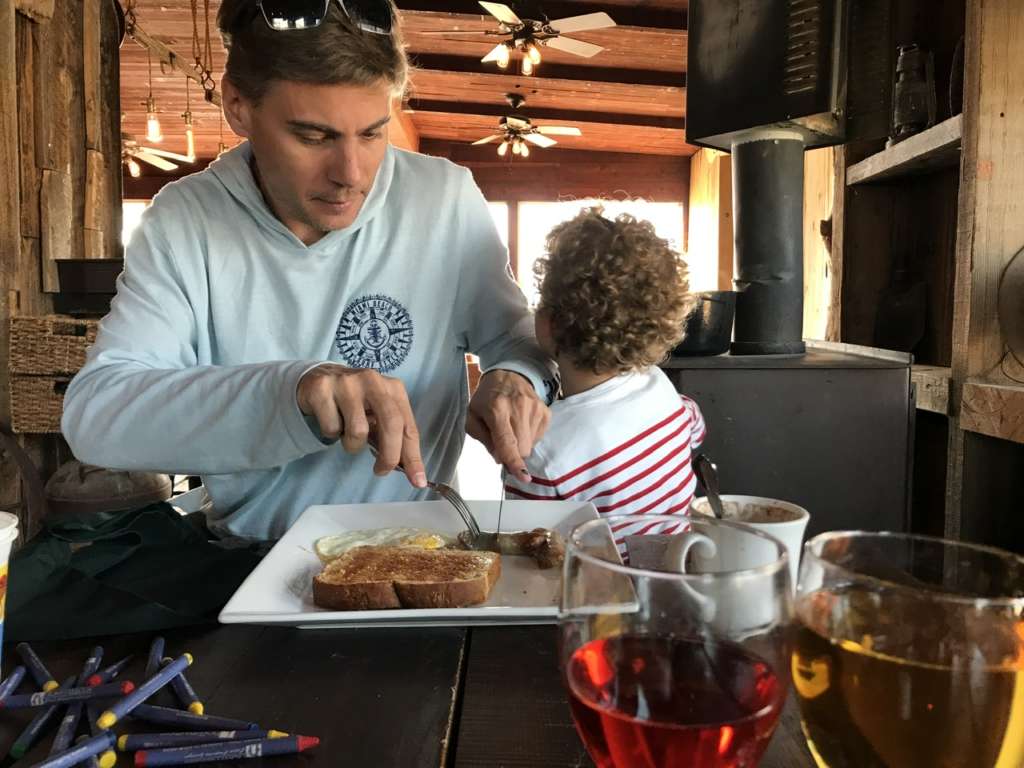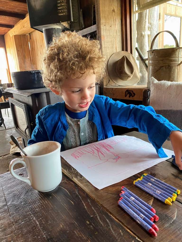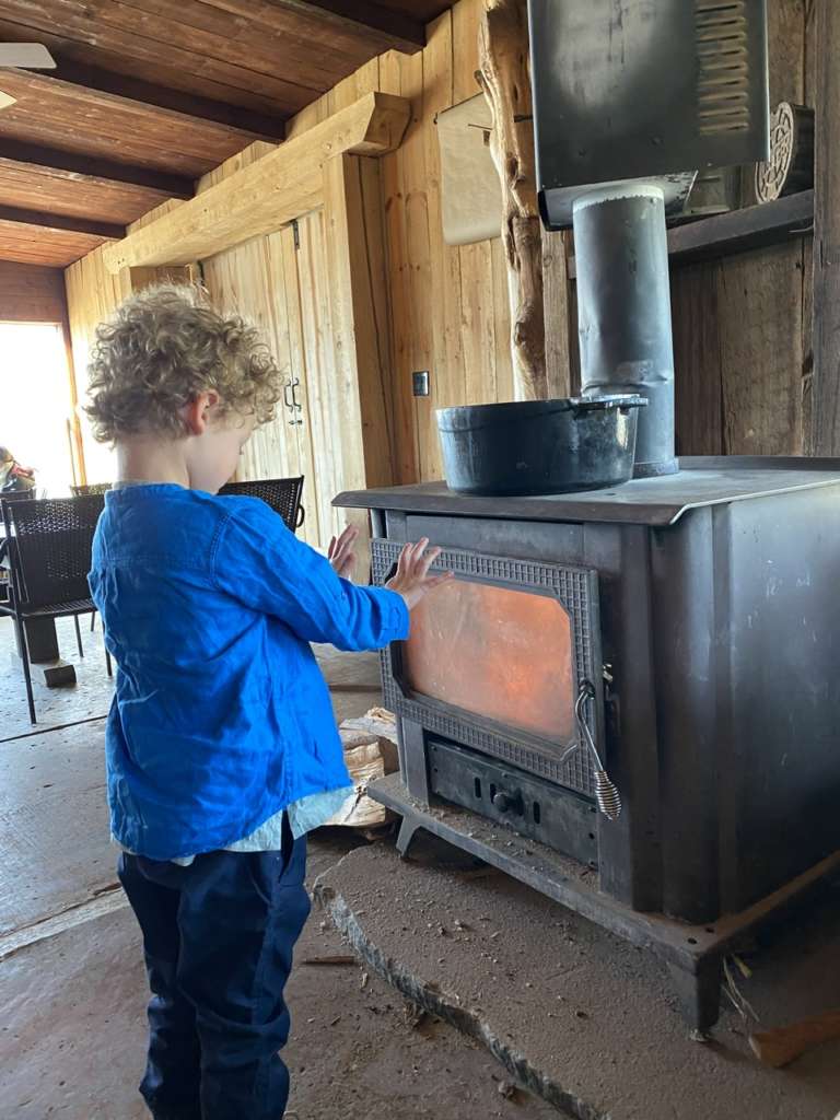 Le petit déjeuner est canon. L’endroit charmant. Noah choisit la table près du poêle et met ses mains devant en disant que c’est bon de se réchauffer. Il faut dire qu’on est à environ 1 800 mètres d’altitude et que le matin il fait allègrement en dessous de 10 degrés. Noah se prend un chocolat chaud avec de la crème – son troisième de sa vie depuis le Groenland et Ushuaia – c’est chic tout de même -, et s’enfile pour une fois un vrai petit déjeuner sans se lever 10 fois de table.