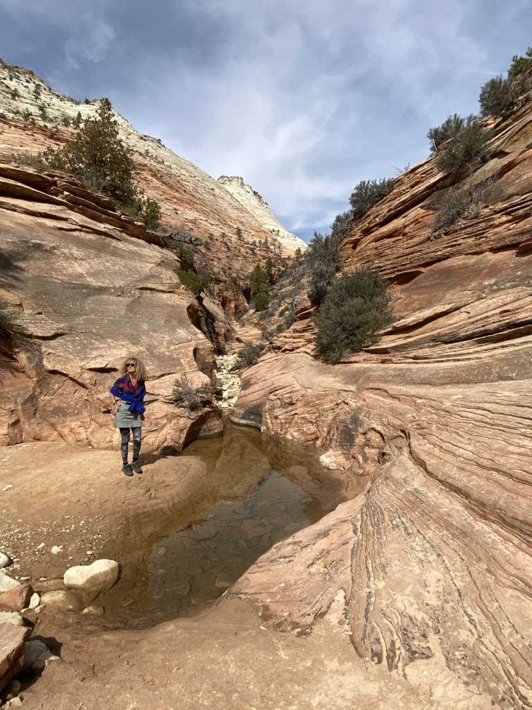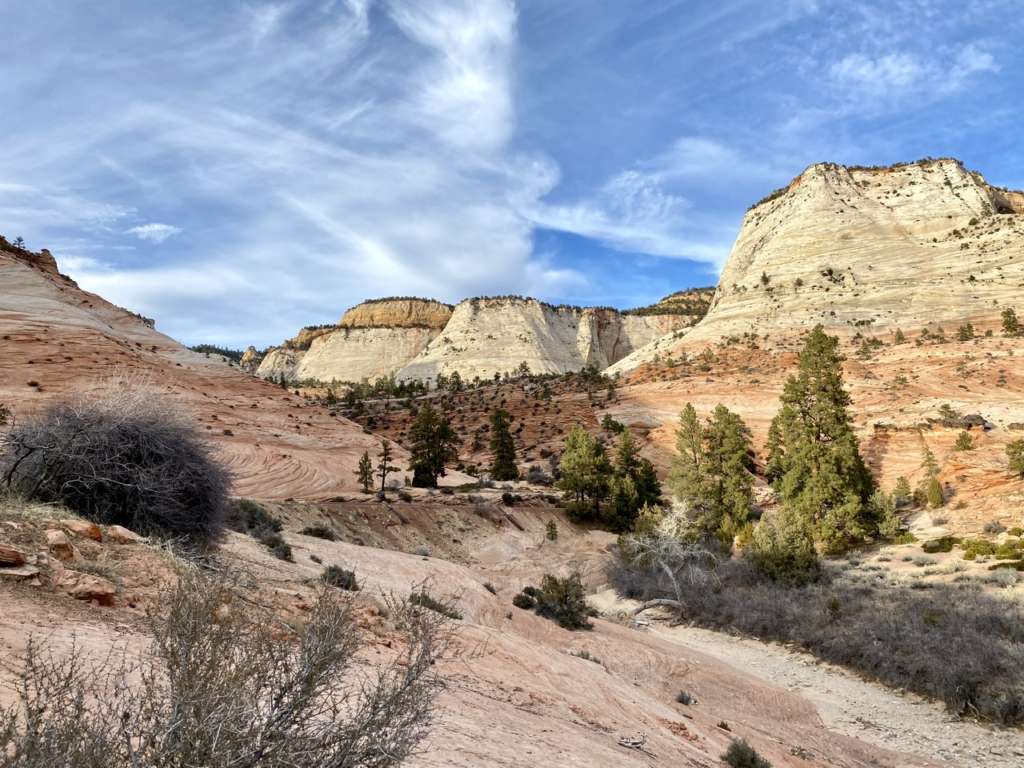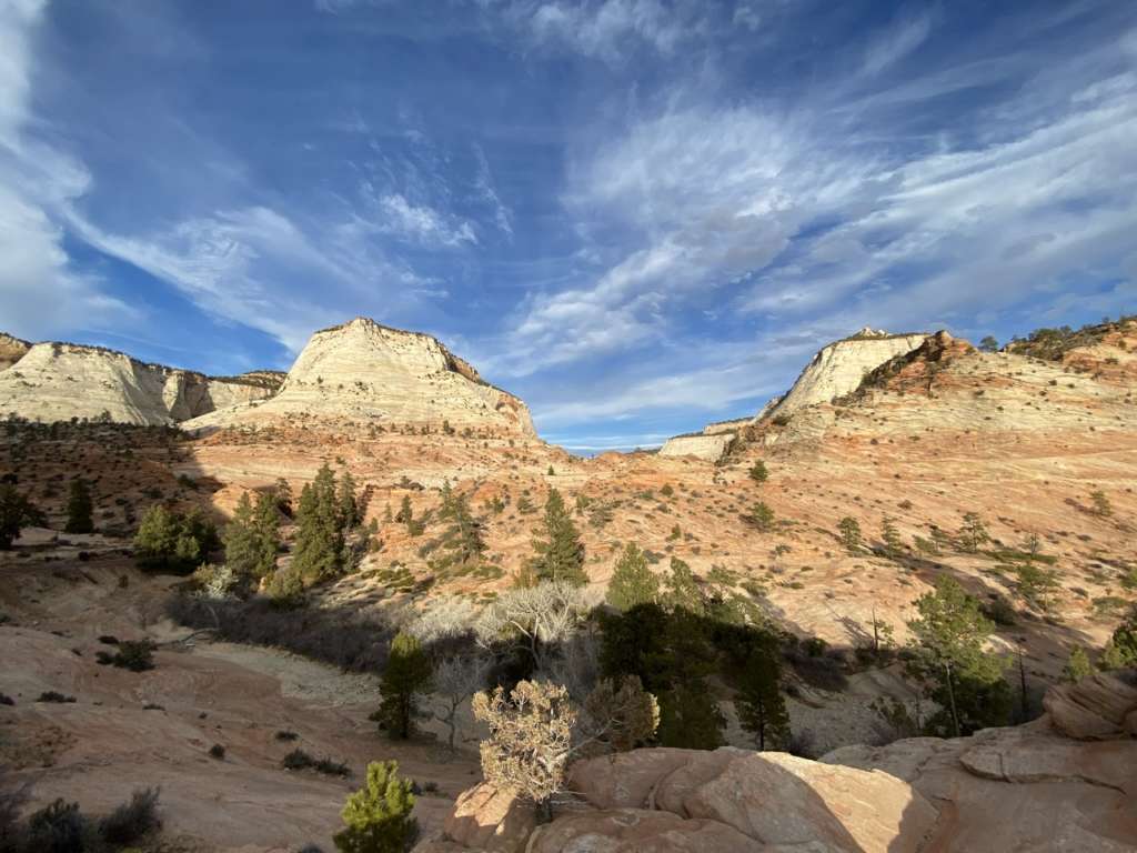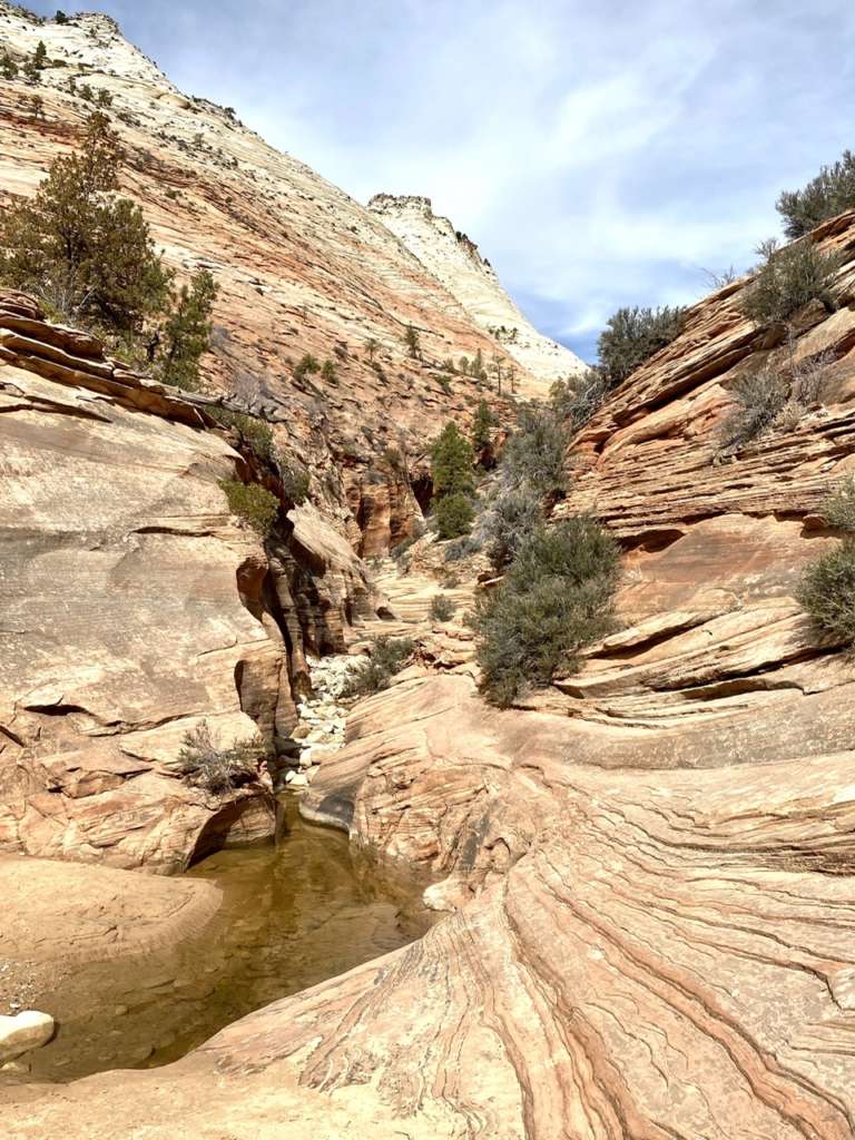 Ce screening fait, On jète donc notre dévolu sur les upper Emerald pool via le Kayenta trail. Mais avant même d’arriver là bas, on s’arrête à de nombreux points de vue sur la Zion-mount Carmel Highway, et surtout sur les premiers kilomètres de la Zion scenic route.