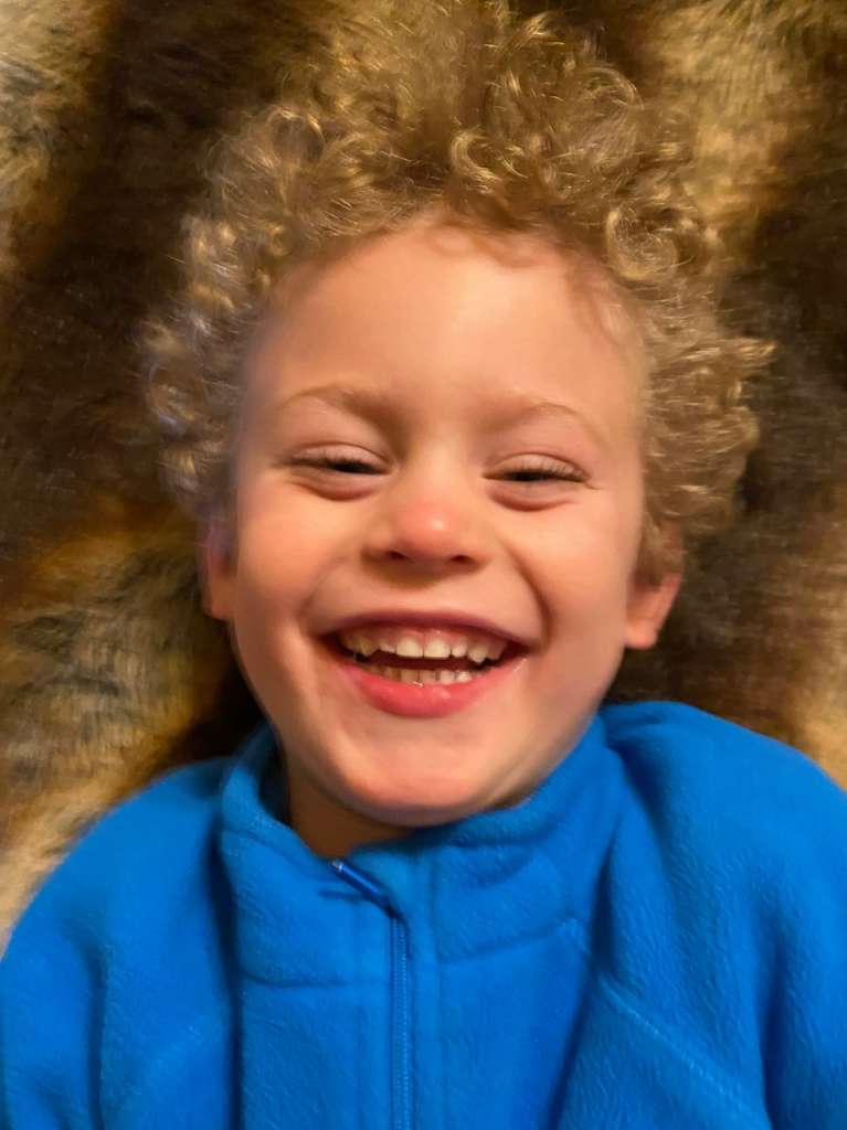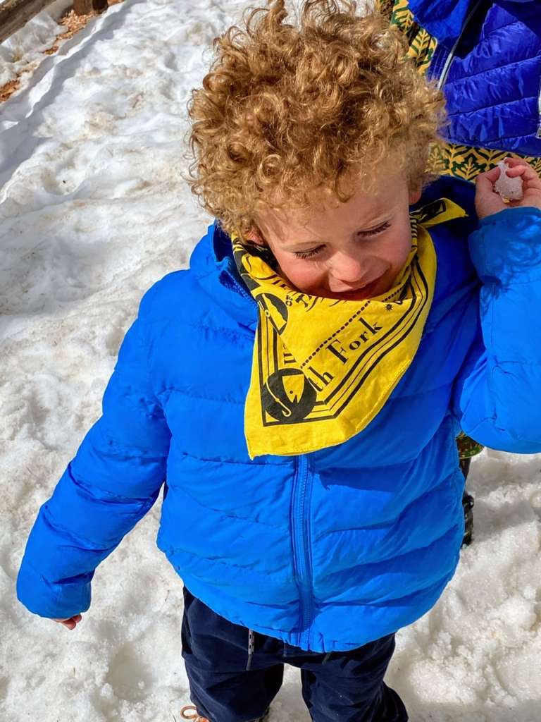 On redescend en courant avec Noah en tombant régulièrement dans la neige. Gros fous-rires, il adore.