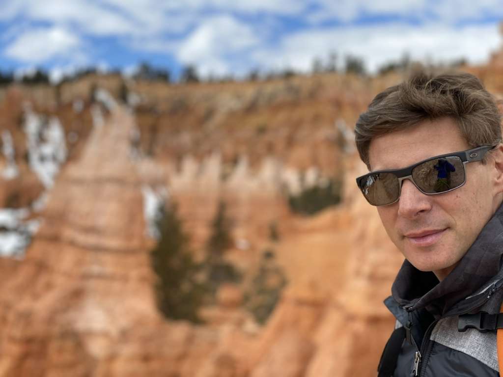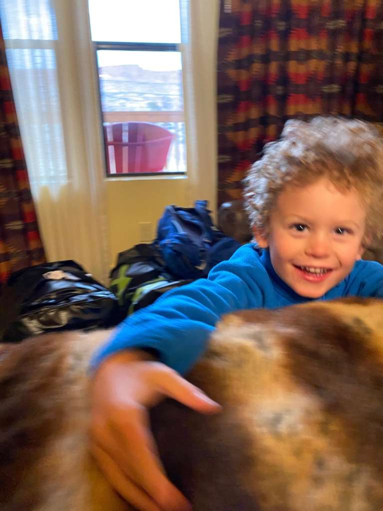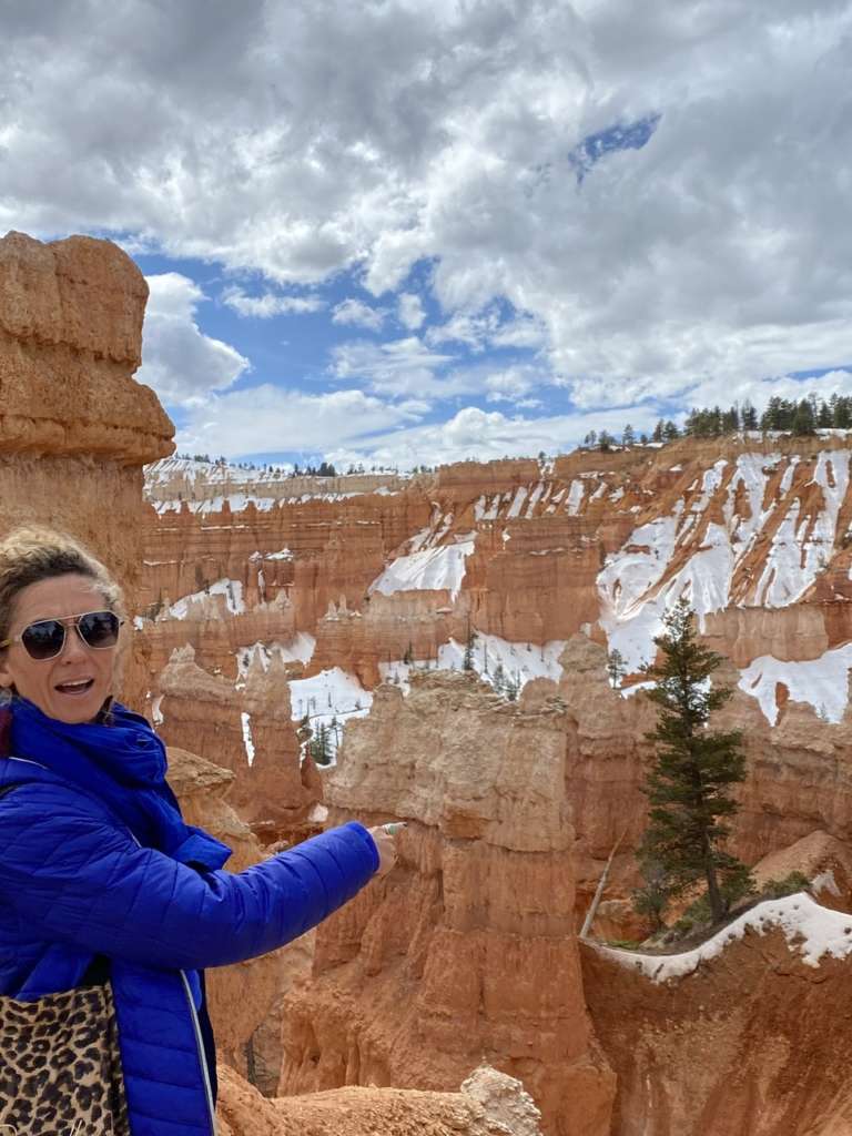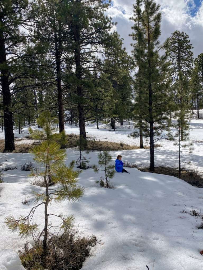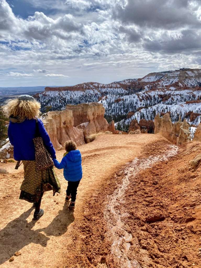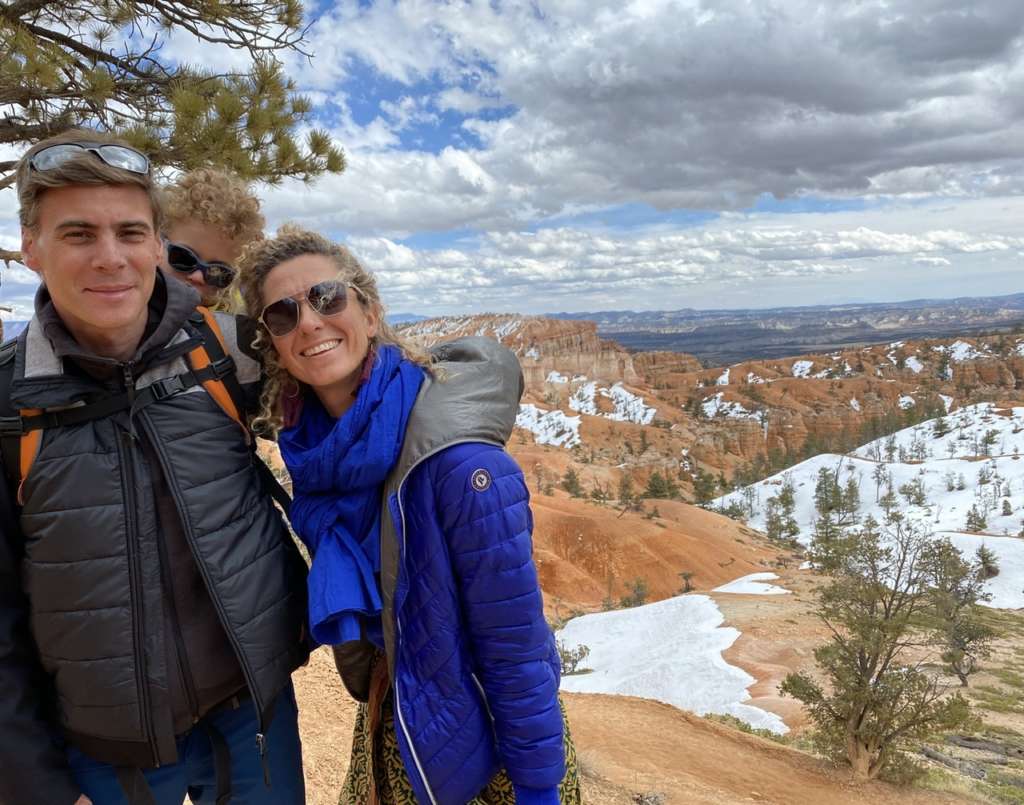 Arrivés à Bryce Canyon, Noah sort de la voiture et 30 secondes plus tard j’entends Virginie qui râle et demande à Noah de sortir de là. Je regarde et il est enfoncé dans la neige jusqu’aux genoux.”Papa, tu peux me délivrer ? “ Ah, ok en fait il marchait dans la neige et s’est enfoncé d’un coup. Il ne peut plus se dégager le Loulou.
