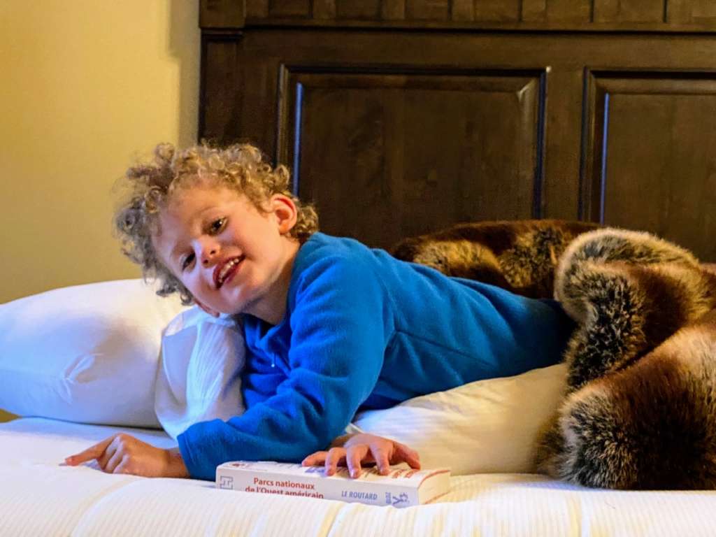 En rentrant dans notre chambre, on suit comme chaque jour les recommandations de l’OMS (Organisation Mondiale du Sourire) et on se fait une séance de papouilles. Pour être en bonne santé, rigolez au moins 5 fois 5 minutes par jour. Avec Noah, on est plutôt à 30 fois, donc on risque pas grand chose.