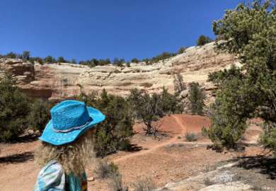 Ce matin, on quitte notre coin de paradis avec un petit regret. La maison était top on serait bien resté encore un jour ou deux juste pour glandouiller. Pour se consoler, Virginie se trouve un chapeau de Cowgirl et des boucles d’oreilles. Ca ne remplace pas le Zion Mountain Ranch, mais au moins elle en emporte un petit souvenir. C’est amusant car elle a hésité à prendre le chapeau à cause des bagages. Moi, ca ne m’est franchement pas venu à l’idée, au point ou on en est de ce côté là..