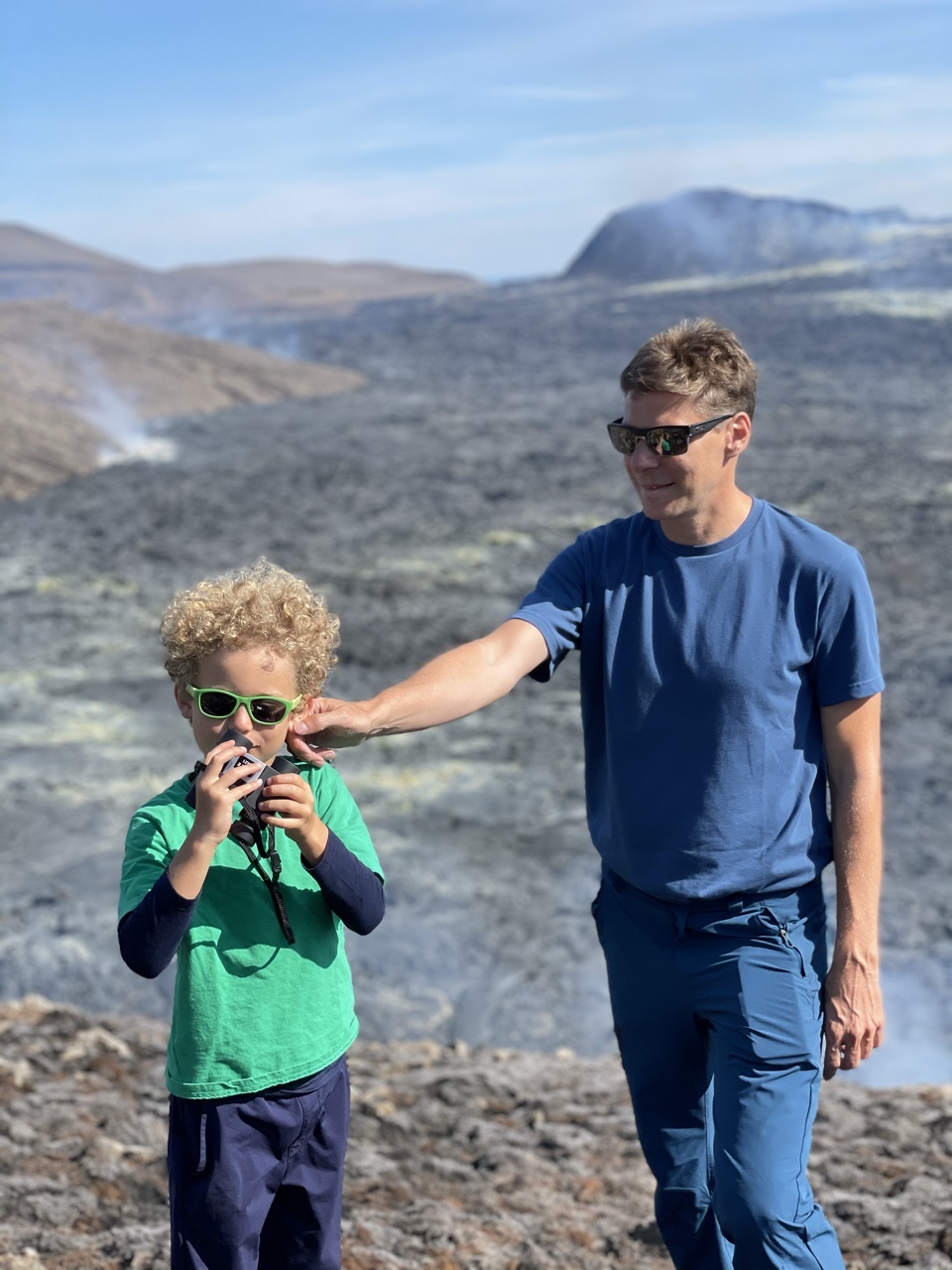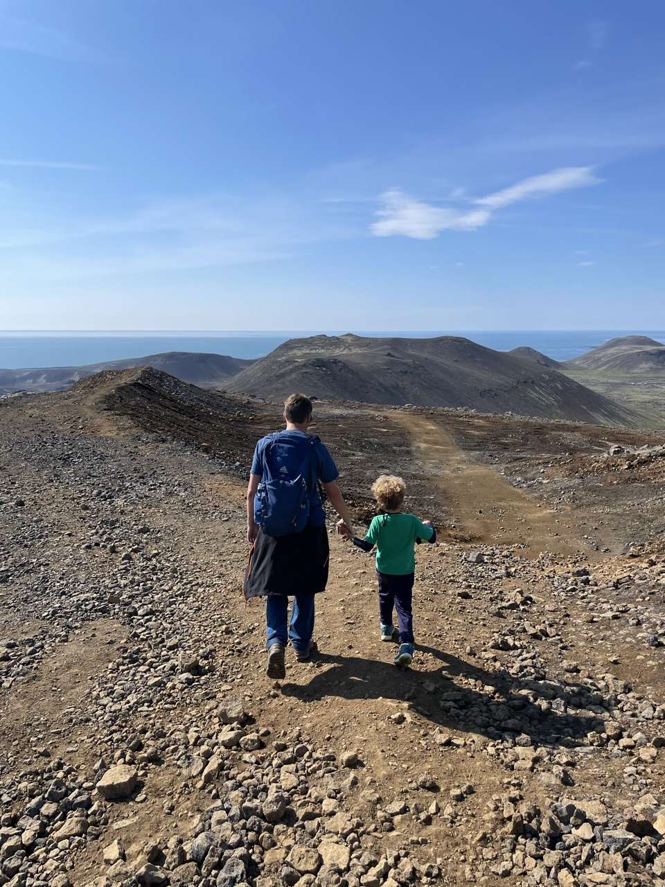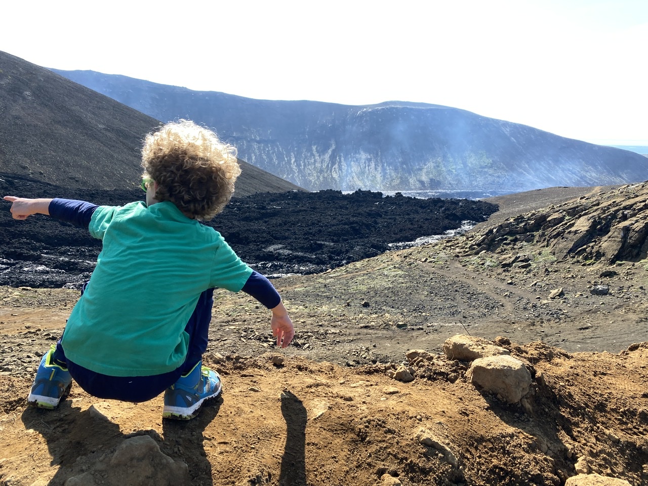 1h de route pour atteindre le volcan, puis rando sur la route B pendant 3-4h pour voir les coulées de lave, déjeuner quelque part du côté de Grindavik, détente au Blue Lagoon (Noah ne parle que de cela depuis 4 jours), puis en fin d’après-midi, randonnée de 2-3h via la route C du volcan pour observer le cratère en éruption, avant de s’enquiller 2h de route pour note prochain hébergement.