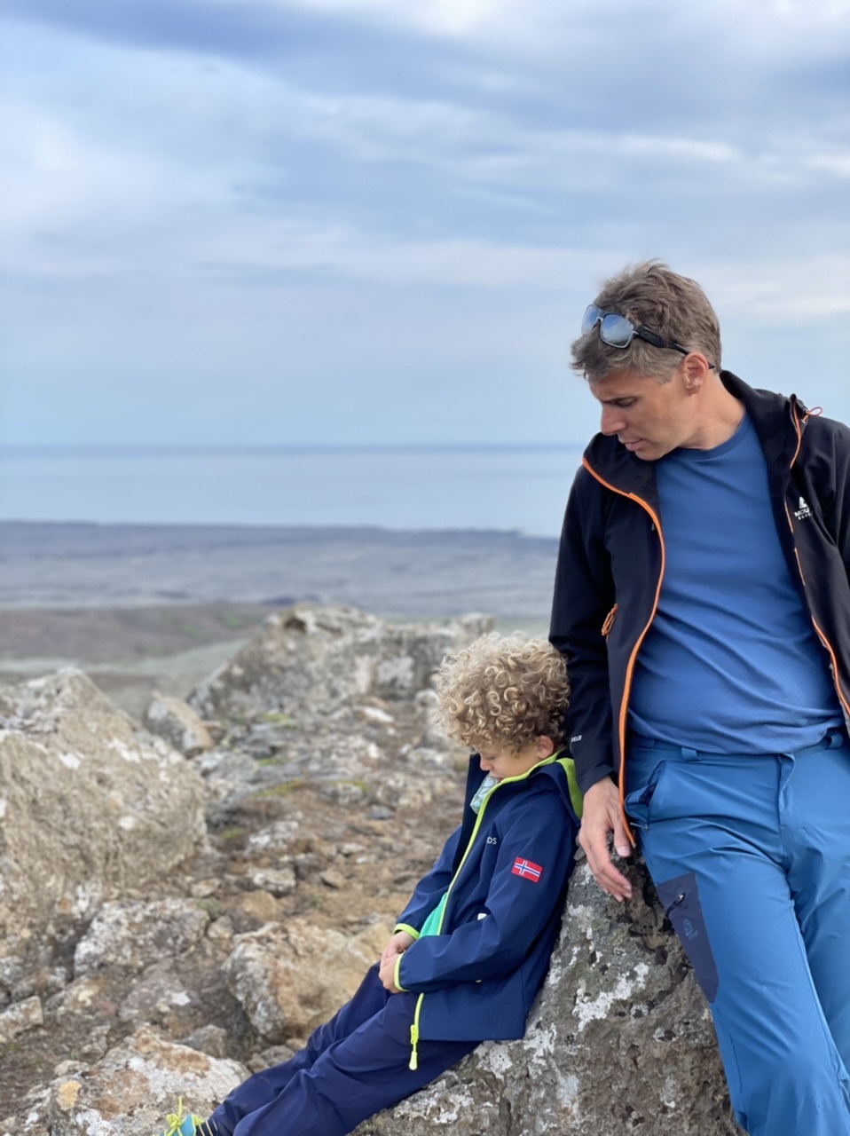 On repart d’où on est venu en ne cessant de se retourner pour voir le volcan finir de se réveiller. Certes on aurait pu rester 1h ou 2 de plus pour le voir peut-être se réveiller davantage et voir des coulées de lave sortir du cratère, mais ce n’est vraiment pas raisonnable pour Noah. Après être descendu dans la pénombre (merci el soleil de minuit), on est enfin de retour en un morceau à la voiture. Il est 23h30.