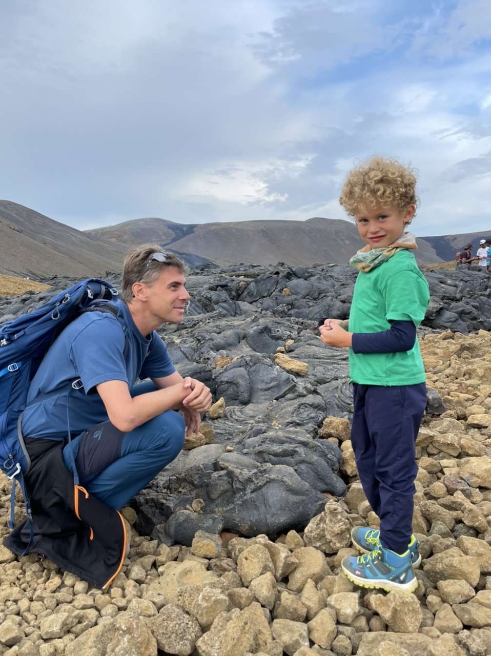 Sur le retour, Noah dévale comme à son accoutumée la piste en mode « skateboard » – comprendre en courant et en me tirant par le bras -. Sauf que sur des zones volcaniques, c’est vite sportif. Bonne nouvelle, mon genou mis à rude épreuve en courant dans cette descente sur un sol aussi dur et inégal a l’air de tenir.