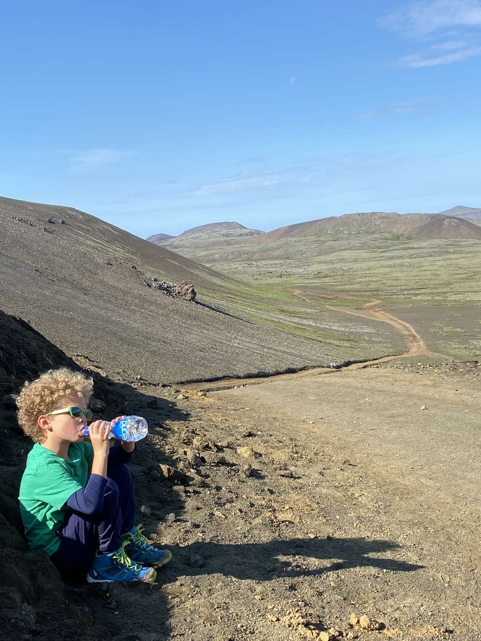 Un moment on pense à inverser le programme et commencer par le Blue Lagoon et se faire en enfilade les 2 randos sur le volcan en fin de journée pour augmenter nos chances de le voir en éruption (on a n’a peur de rien), mais en checkant sur internet le Blue Lagoon est complet jusqu’à 14h (c’est le seul endroit d’Islande où il y a foule) et avec le peu qu’on a dormi, si on fait 6h de rando à partir de 15h, pas sûr que Noah suive.