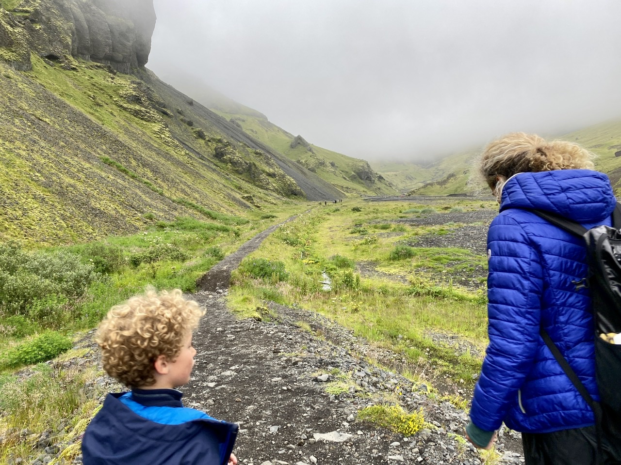 Ils annonçaient de la flotte ce matin. Tant mieux, on allait tranquillement cocooner dans notre petite maison en face de la cascade. Mais ça, c’était sans compter sur le remake des poux brésiliens à la mode Islandaise officiellement identifiés hier soir. Foutu cheveux bouclés ! (Pardon pour le blasphème des sacro-saint cheveux mère-fils).
