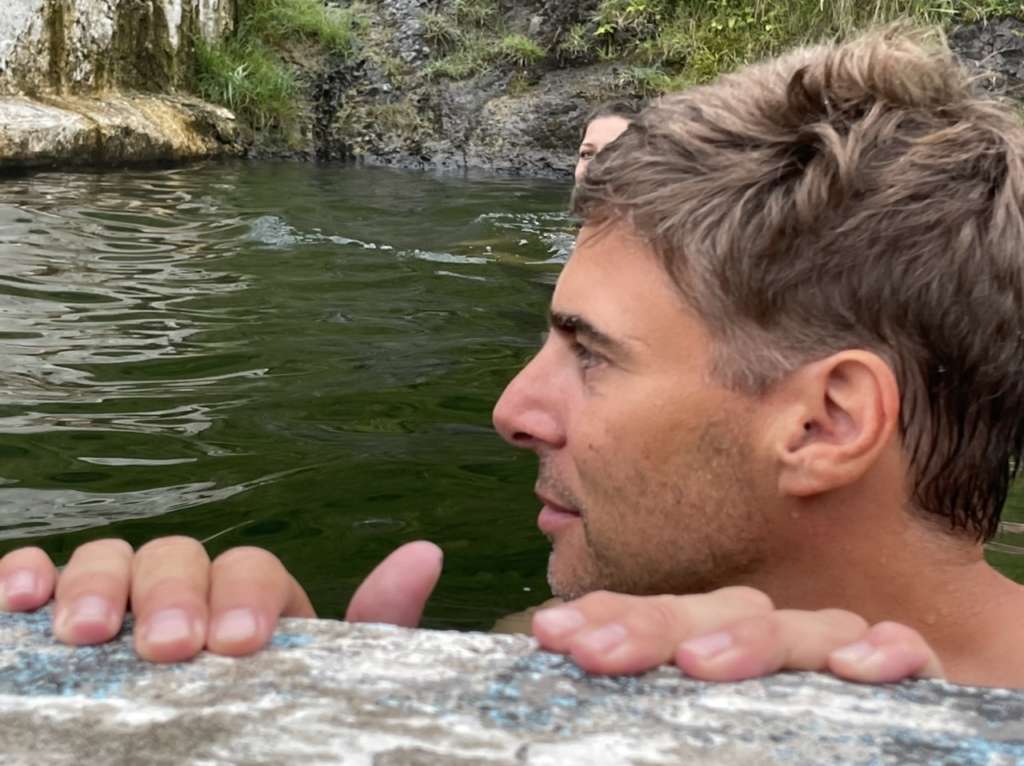 Il est 17h bien tapé, mais la grande passion de Noah c’est avant tout les bains chauds. Alors après la glace, place au feu et la piscine d’eau chaude naturelle Seljavallalaug pool à 15 minutes d’ici.