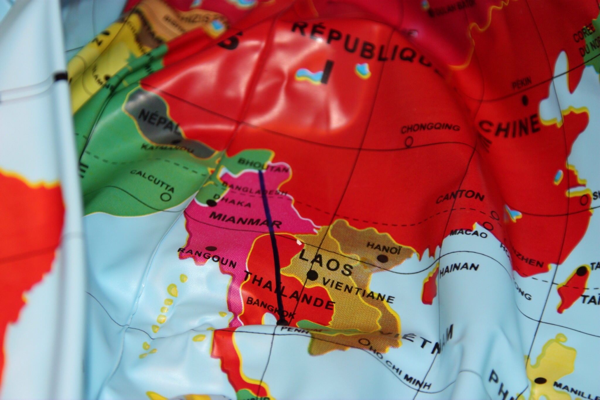 Je reviens donc à cette idée magique de prendre des mappemondes gonflables. On est à J-5 avant le départ et plutôt pas prêt du tout pour partir jeudi prochain, mais on décide quand même de “customiser” nos mappemondes avant de les offrir. Après avoir trouvé le stabilo, la seule règle qu’ont rouve dans l’appart pour tirer les traits fait 110cm. Pratique…).