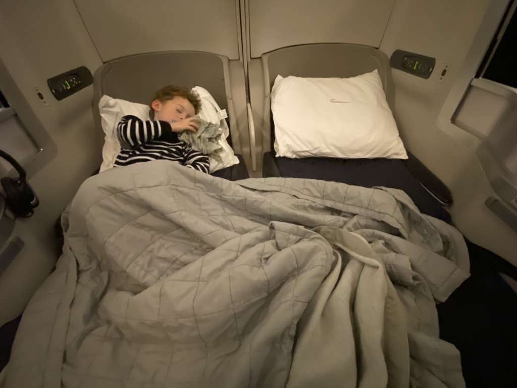 A 1h30 du matin, Il a dit qu’il voulait aller dormir mais qu’avant on allait aller se brosser les dents et faire pipi. Puis, a insisté pour que moi aussi j’aille me brosser les dents et faire pipi, faisant le gué devant la porte des toilettes de l’avion le temps que je finisse. Puis, il s’est allongé, et juste avant de dormir, a essayé de m’expliquer une dernière fois avec application, martelant chaque syllable comme un ultime effort pour se rappeler et retarder l’échéance du coucher, qu’il avait pris 3 trains, 2 avions et qu’il allait bientôt arriver en ARGENTINE après le dodo.